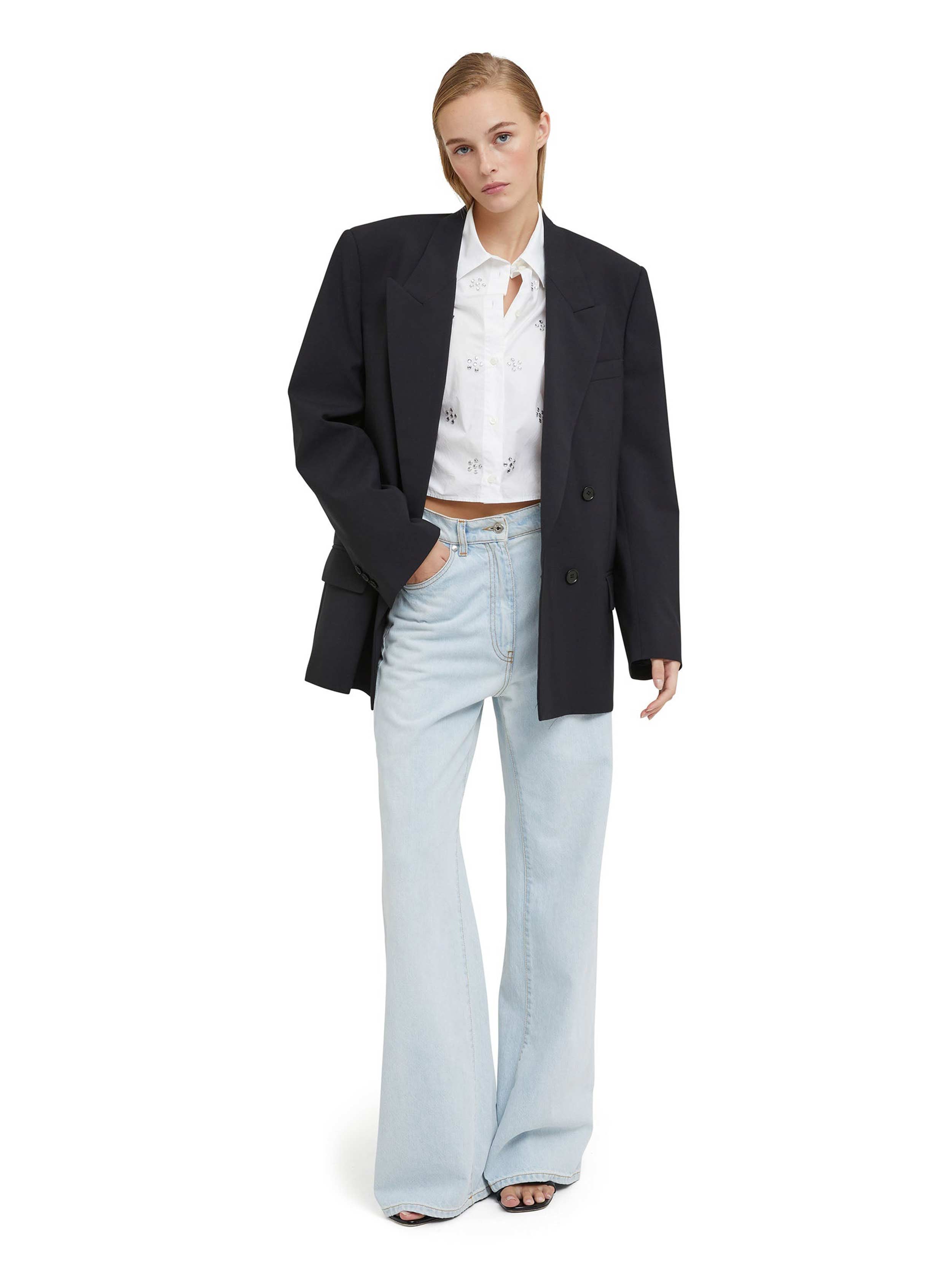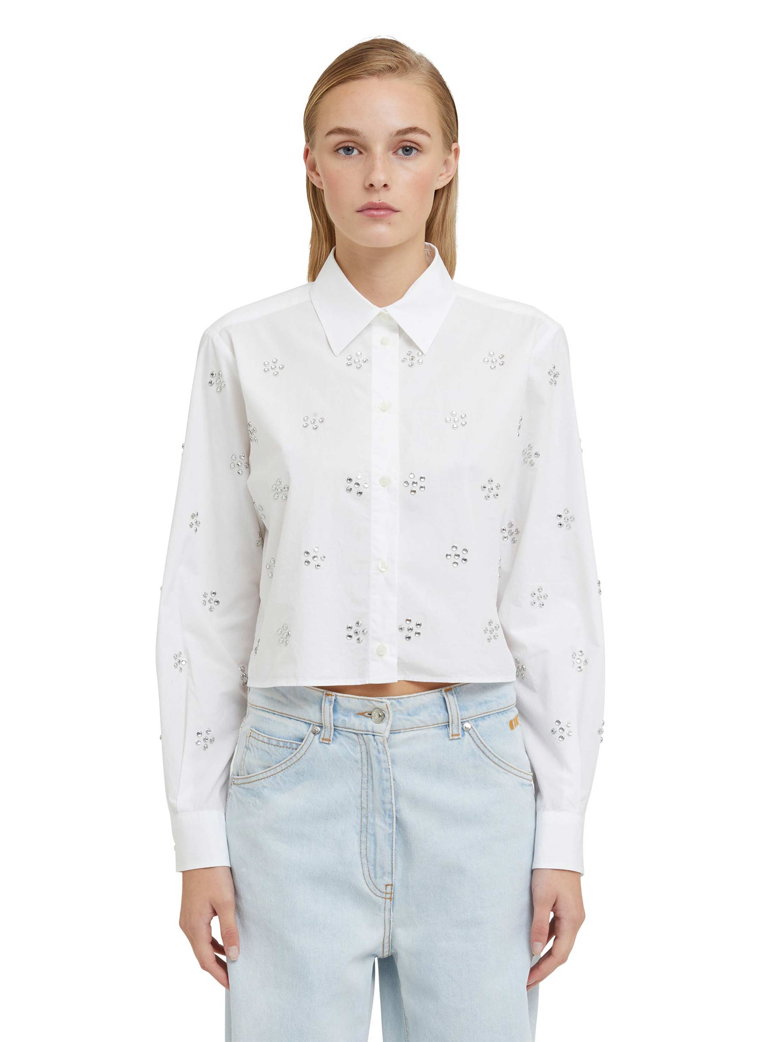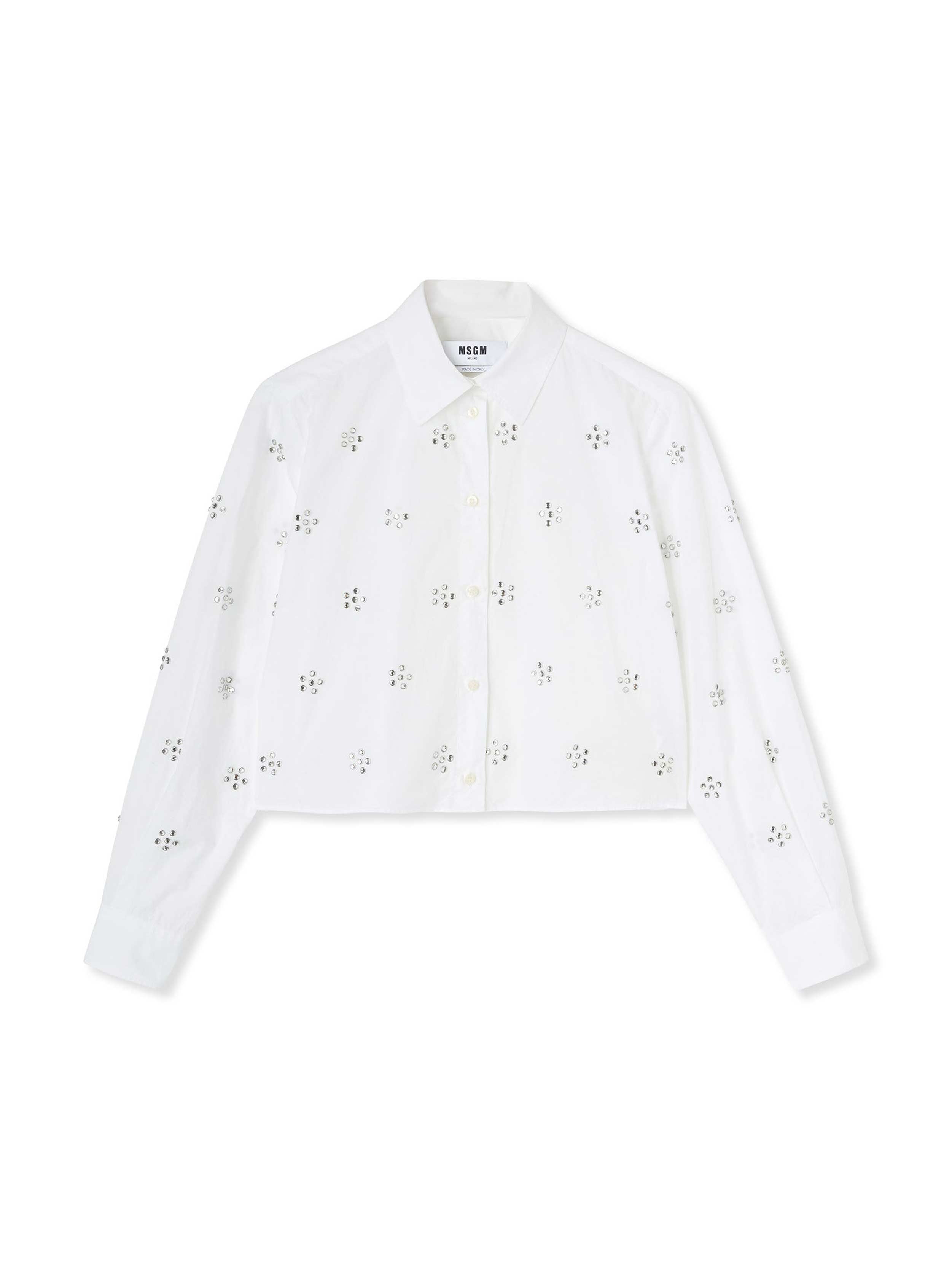 MSGM - Poplin Crop Shirt With Rhinestone Daisy Application