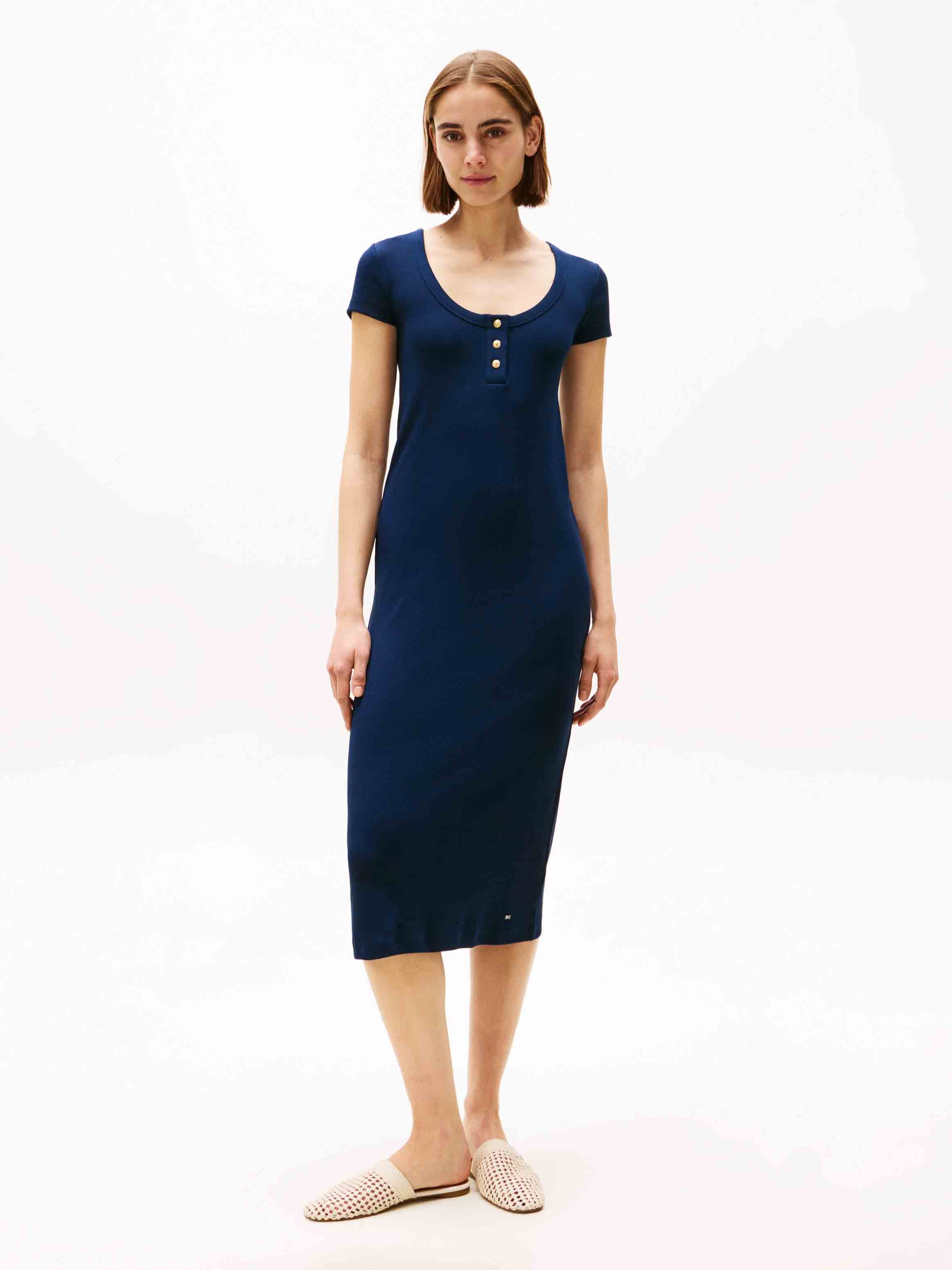 Tommy Hilfiger - SLIM HENLEY GOLD BTN DRESS , L , Dark Night Navy , Style WW0WW43864
