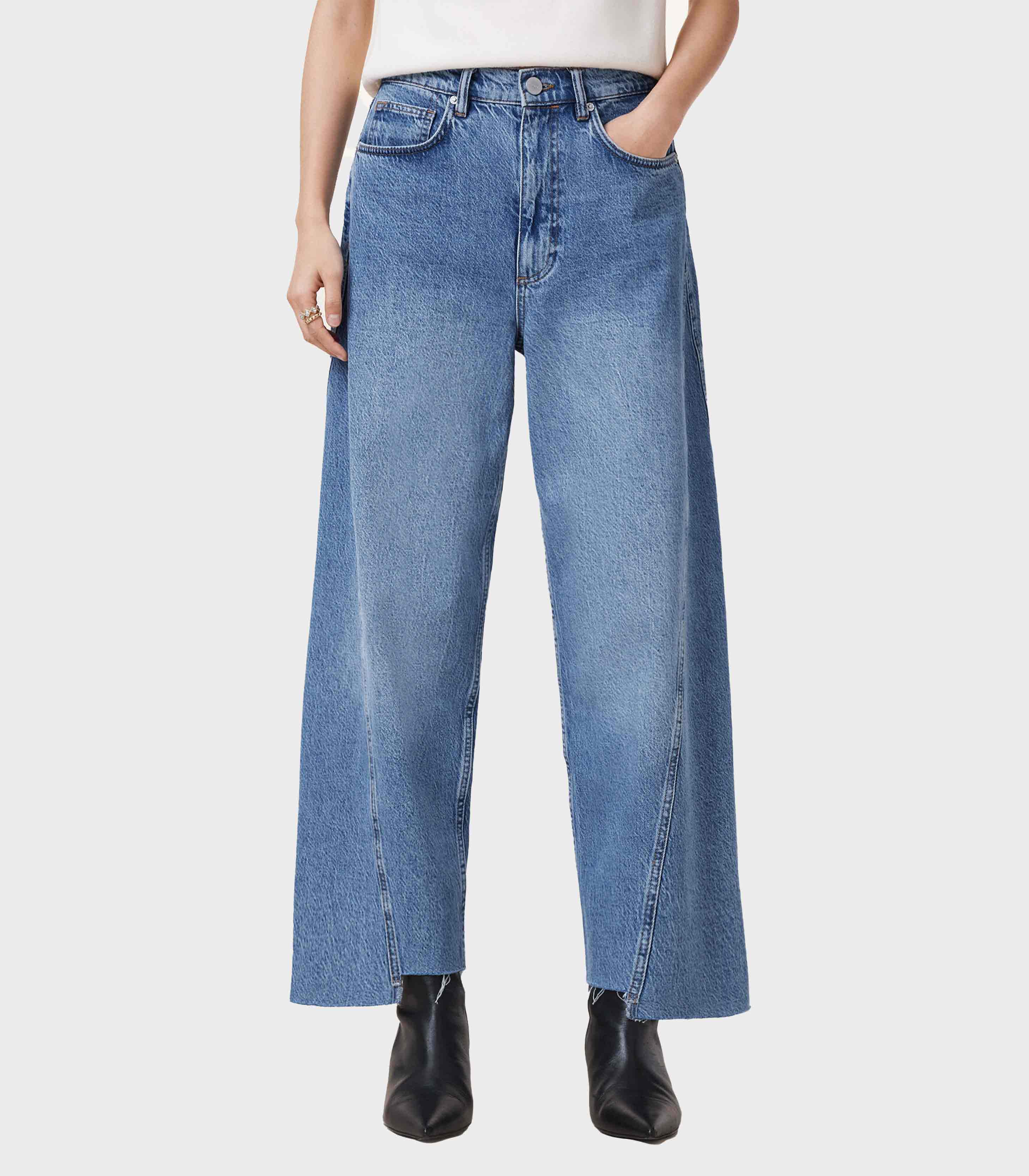 AllSaints - Fox Asymmetric Hem Wide Leg Denim Jeans