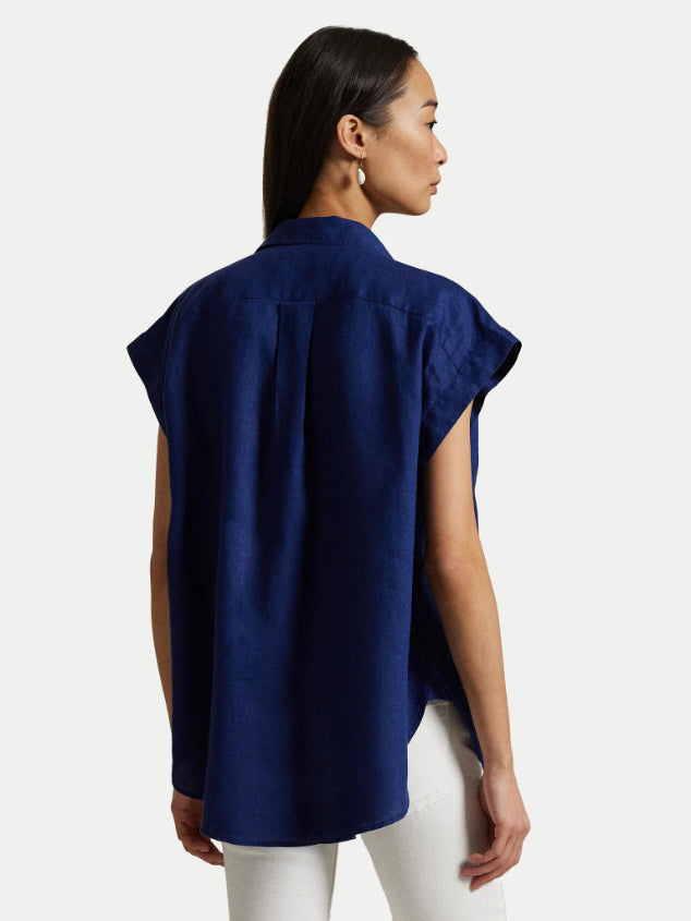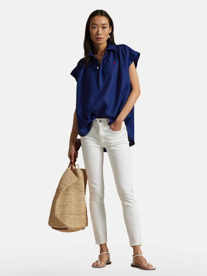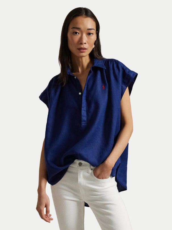 • Woven with airy linen and cut for a slightly oversize fit, this popover shirt is detailed with shirring at the shoulders and finished with our embroidered Pony at the chest.