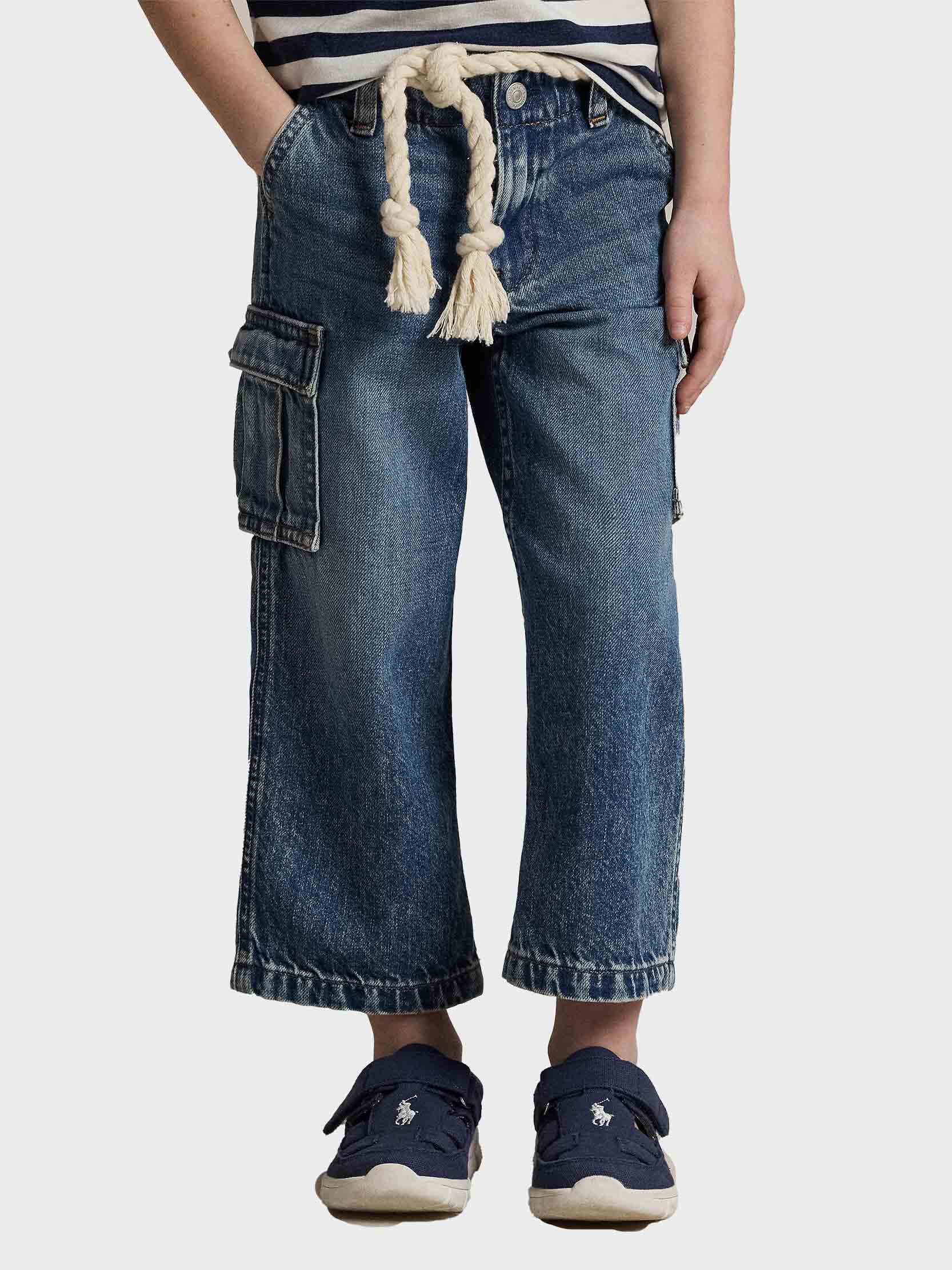 • Polo Ralph Lauren - Girls' Wide-Leg Indigo Cargo Jeans