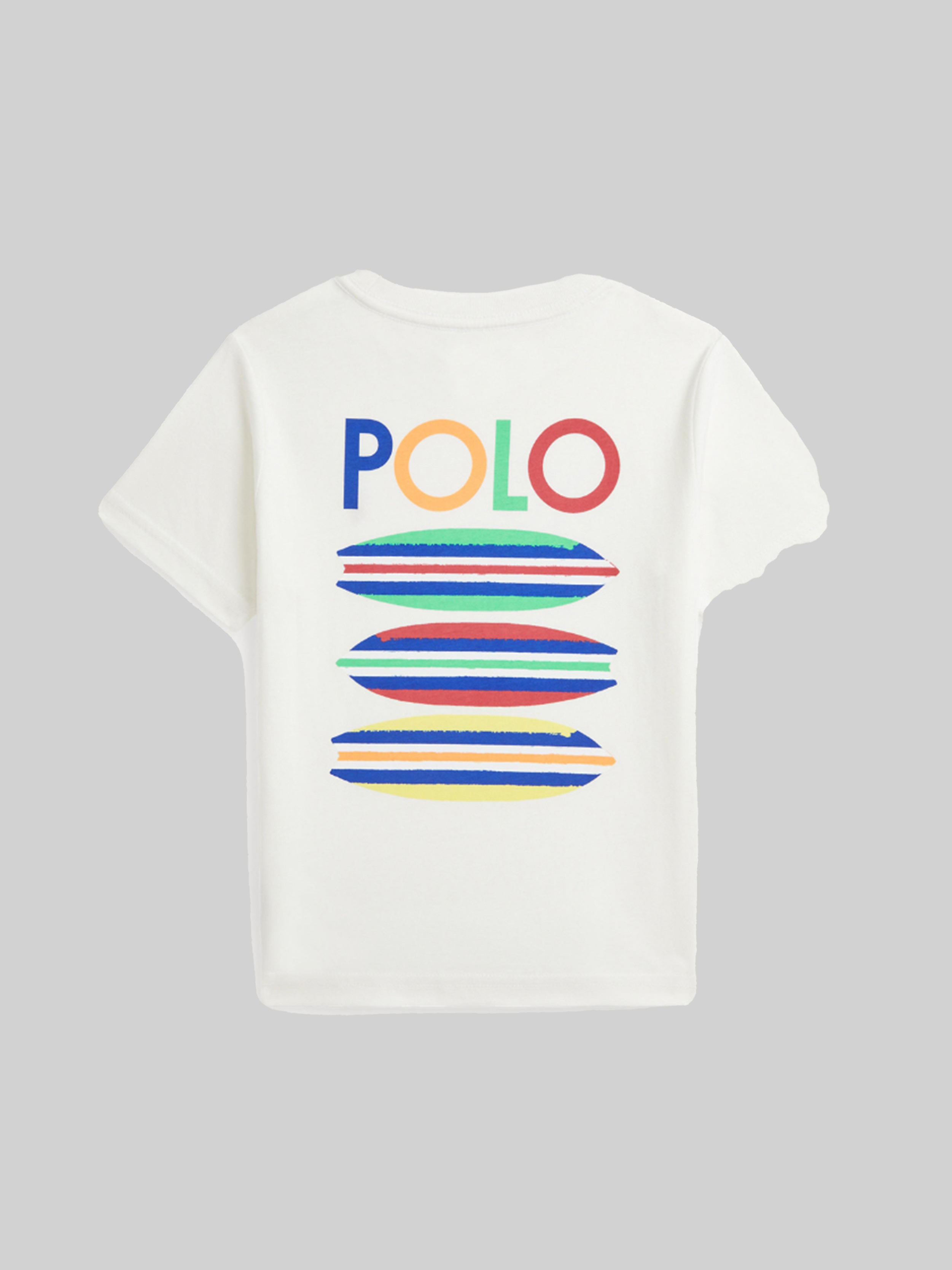 • This T-shirt features our logo along with a vibrant surfboard motif printed on the back. It is embroidered with the iconic Polo Pony on the left chest.