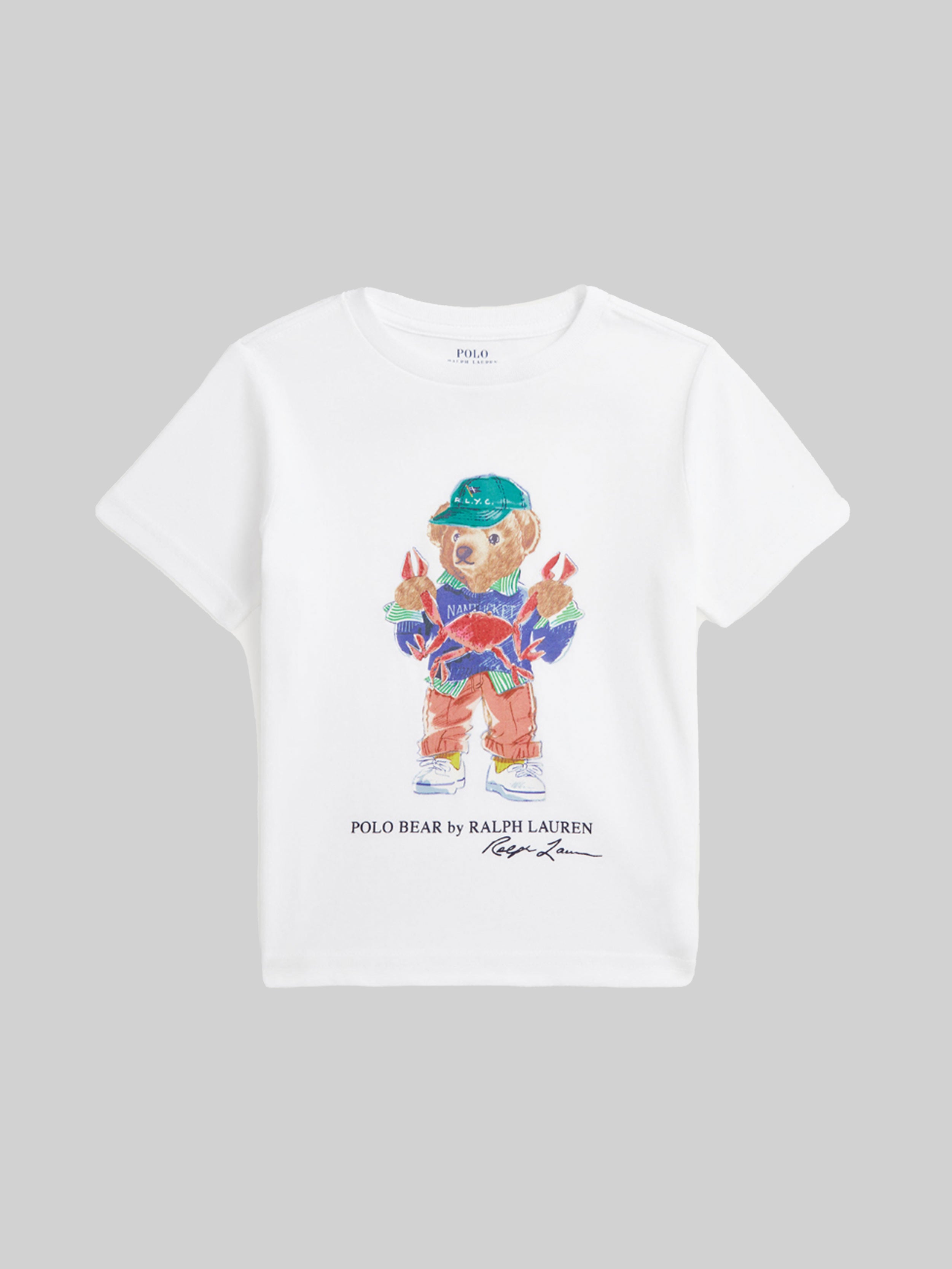 • Polo Bear, "Polo Bear by Ralph Lauren" and "Ralph Lauren" script printed on the centre front.