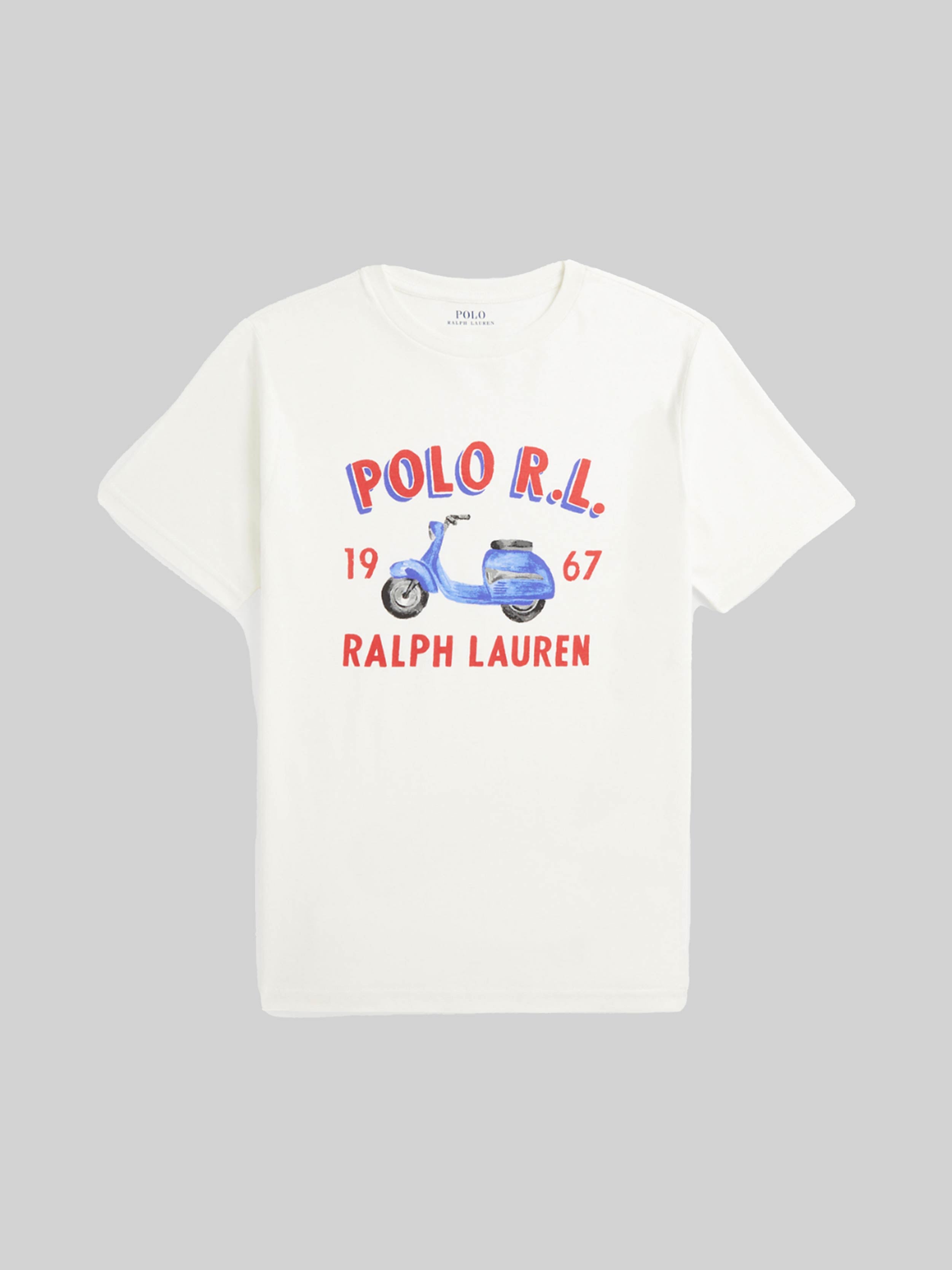 • "Polo R.L.", "1967", a scooter graphic and "Ralph Lauren" printed at the centre front.