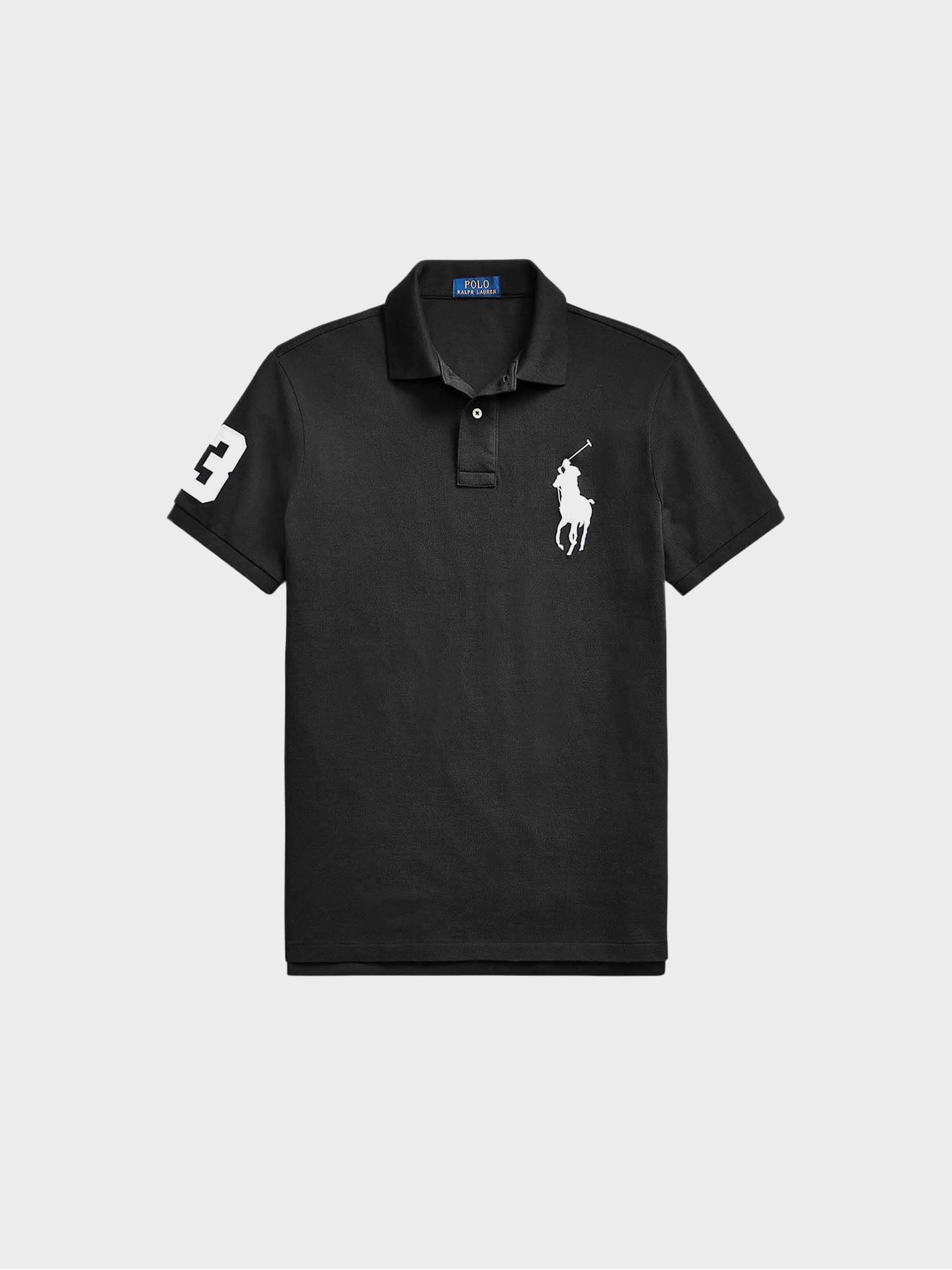 • From its meticulous construction—our signature embroidered Big Pony alone requires a total of 10,800 individual stitches to produce—to its cotton mesh fabric, which only gets better with wear, Ralph Lauren's Polo shirt has been an icon of American style since 1972. This version is cut for a trim silhouette and finished with a "3" appliqué—the number typically worn by a polo team's strongest player.
