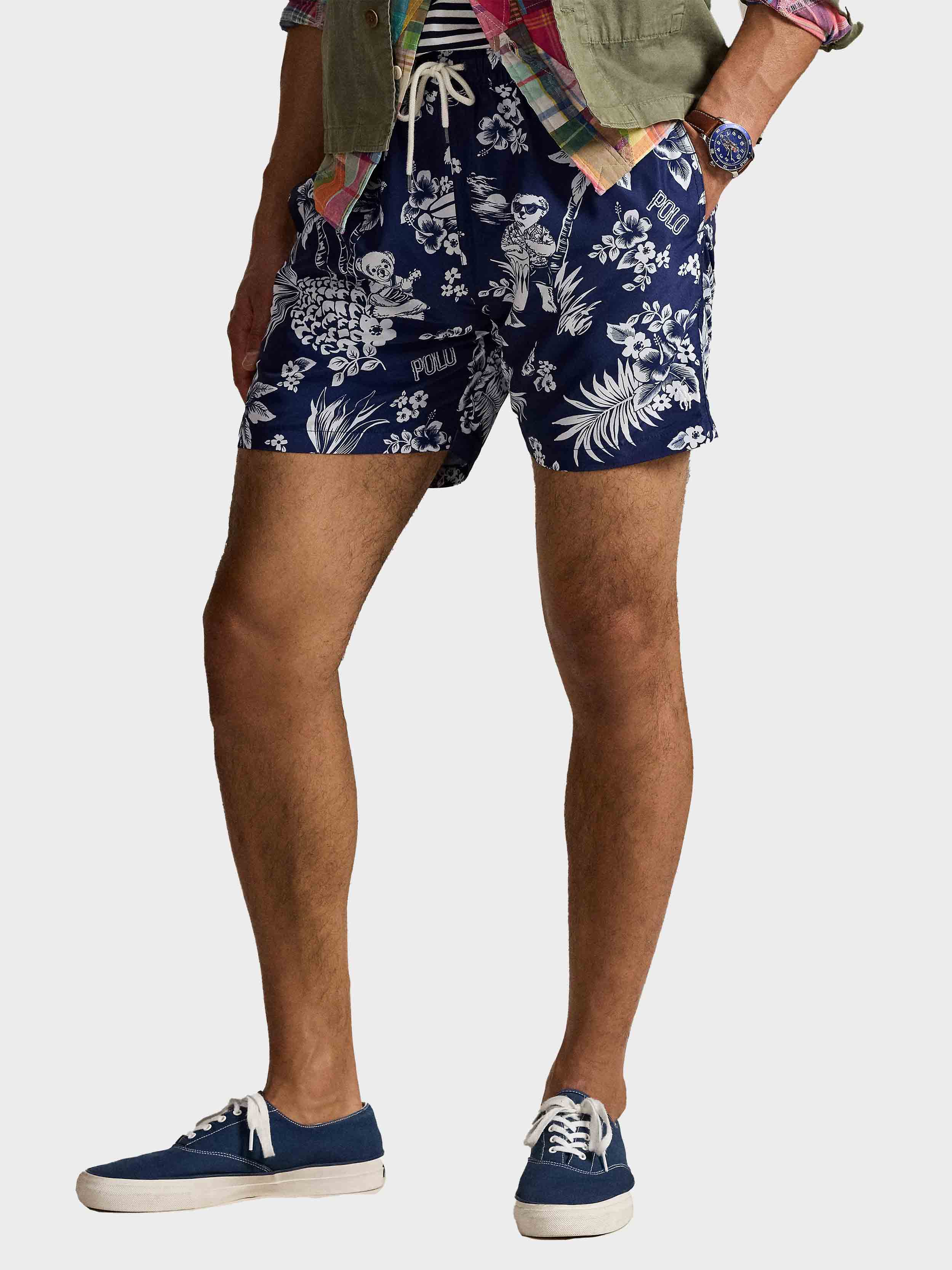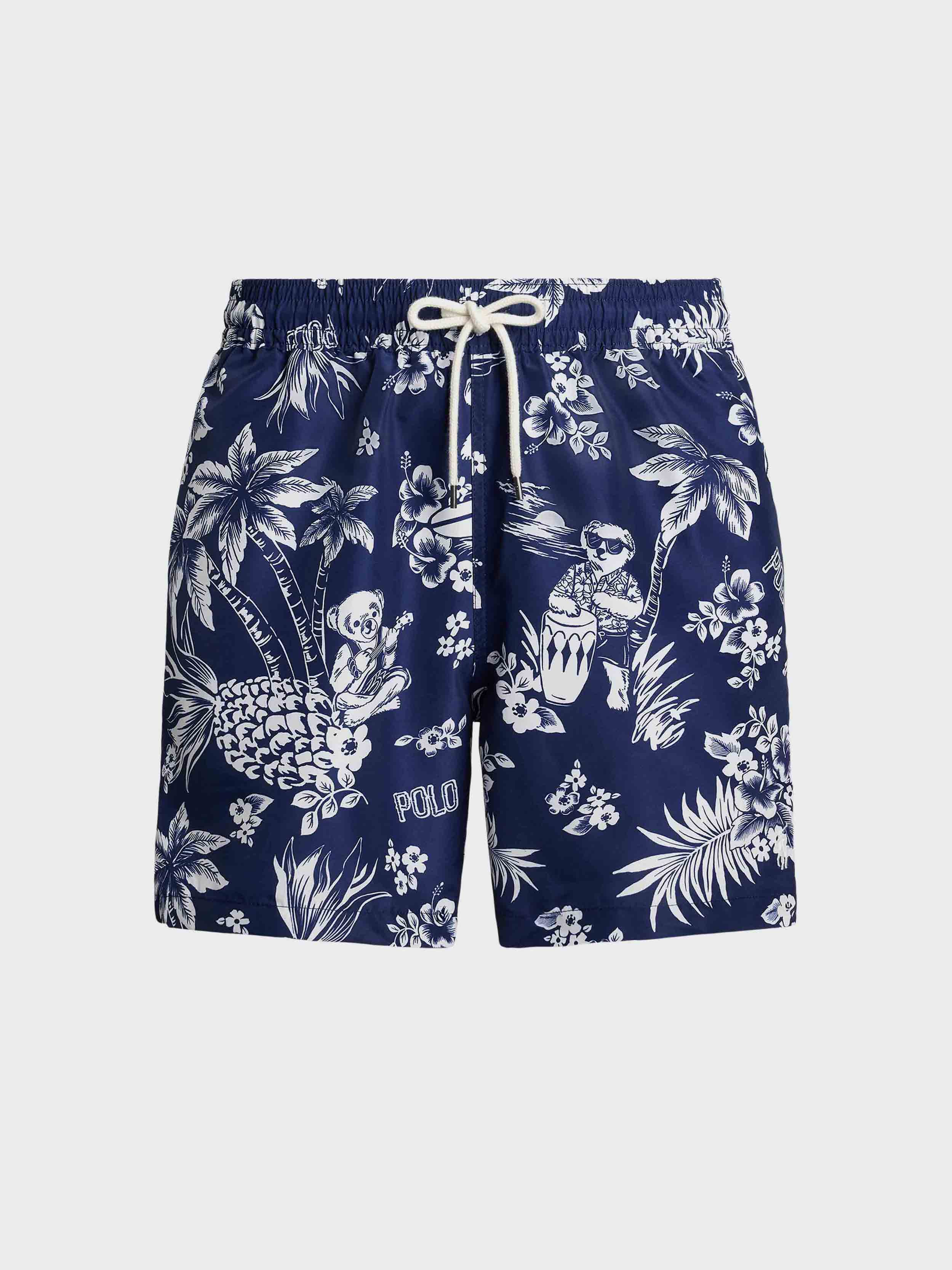 • These swimming trunks are embroidered with our signature Pony and feature an allover tropical print that includes our iconic Polo Bear and logo.