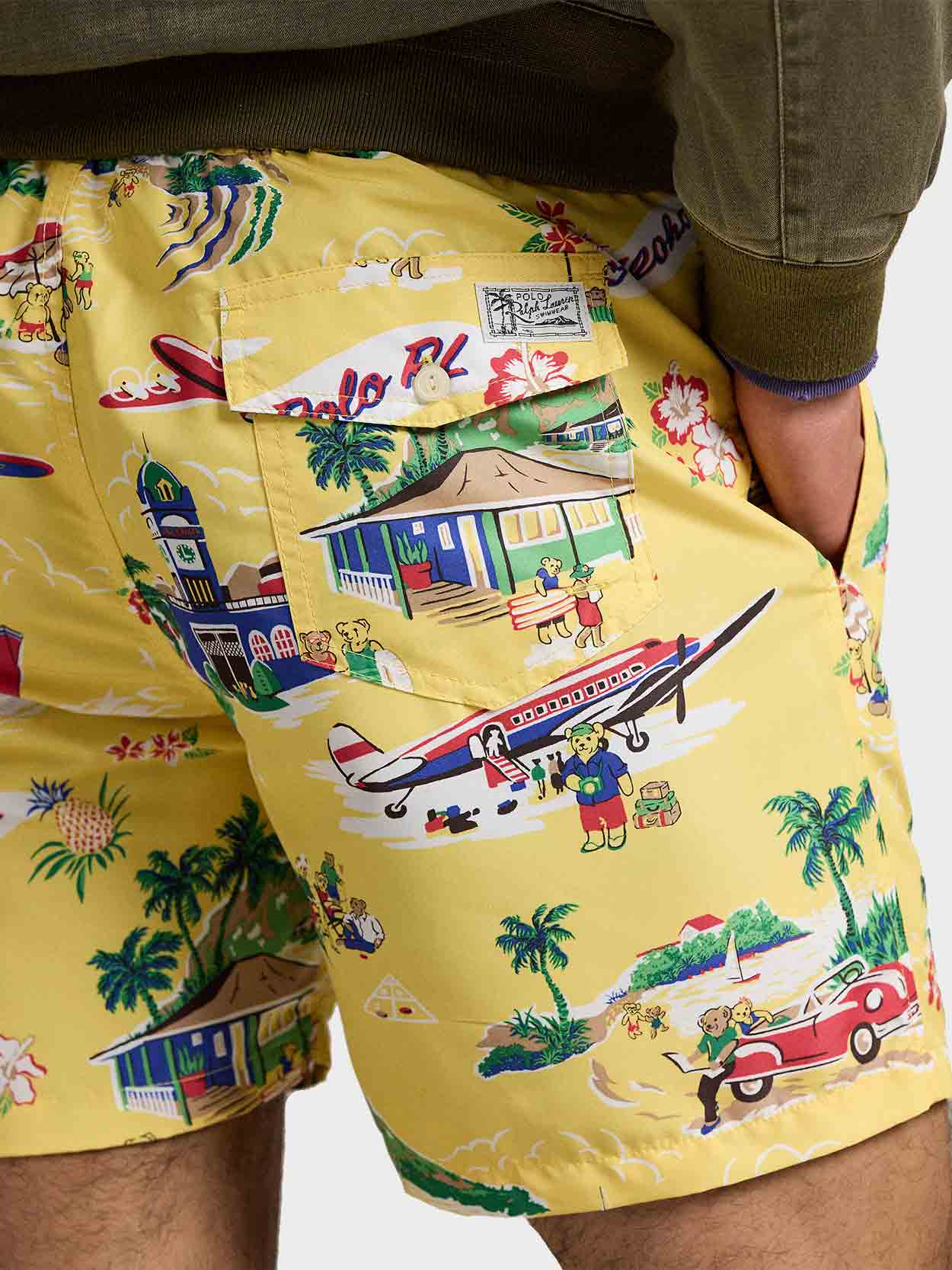 • These swimming trunks are embroidered with our signature Pony and feature a retro-inspired motif of our beloved Polo Bear going on holiday.
