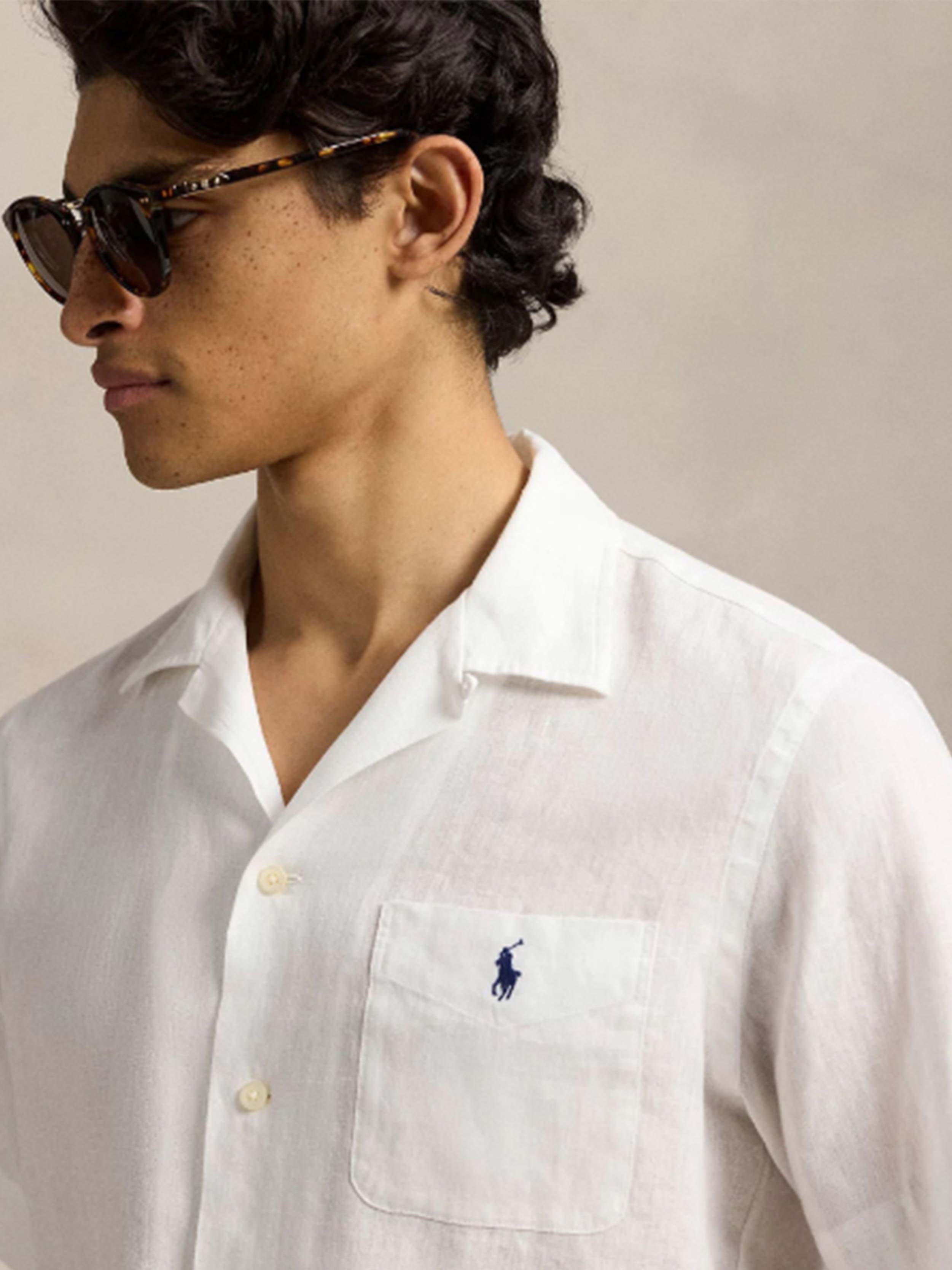 • This camp shirt is crafted from ultra-lightweight linen and finished with our signature embroidered Pony on the pocket.