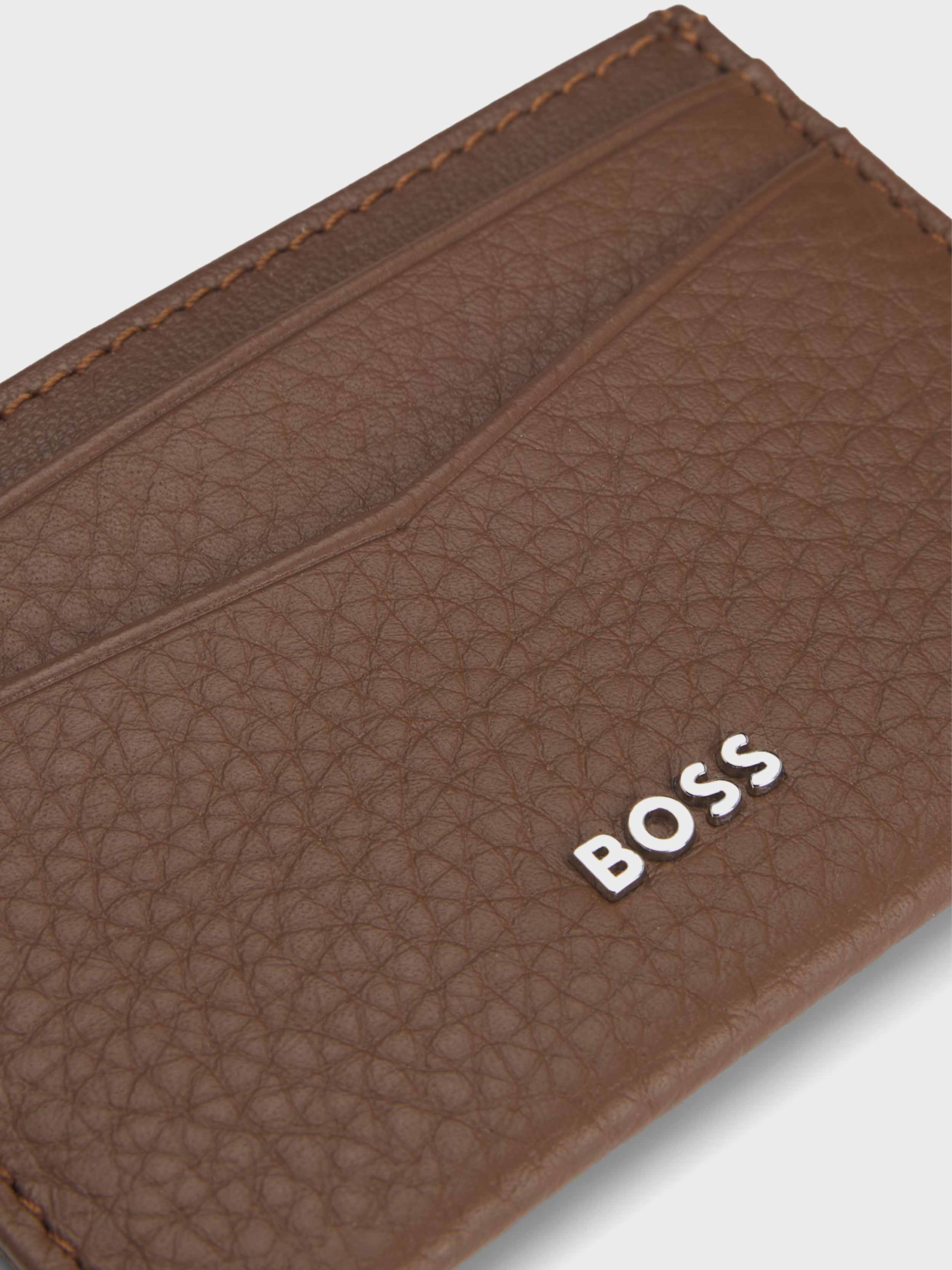 BOSS - Men's Grained Leather Card Holder With Logo Lettering