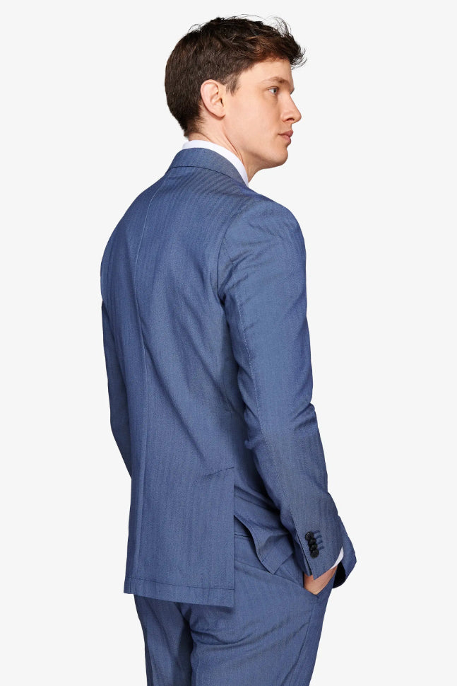 • Herringbone pattern suit jacket in cotton blend fabric.