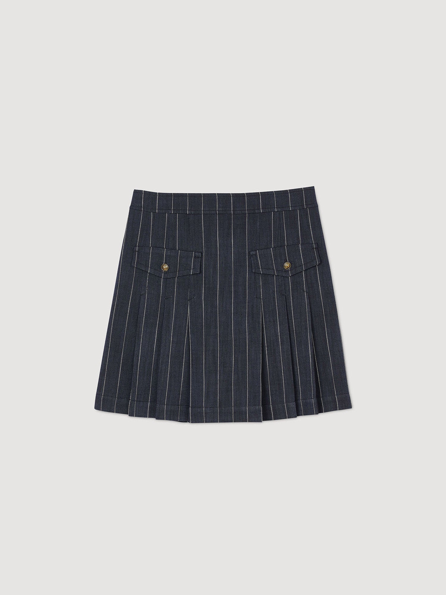 • Short pleated skirt with stripes and patch pockets with flaps.