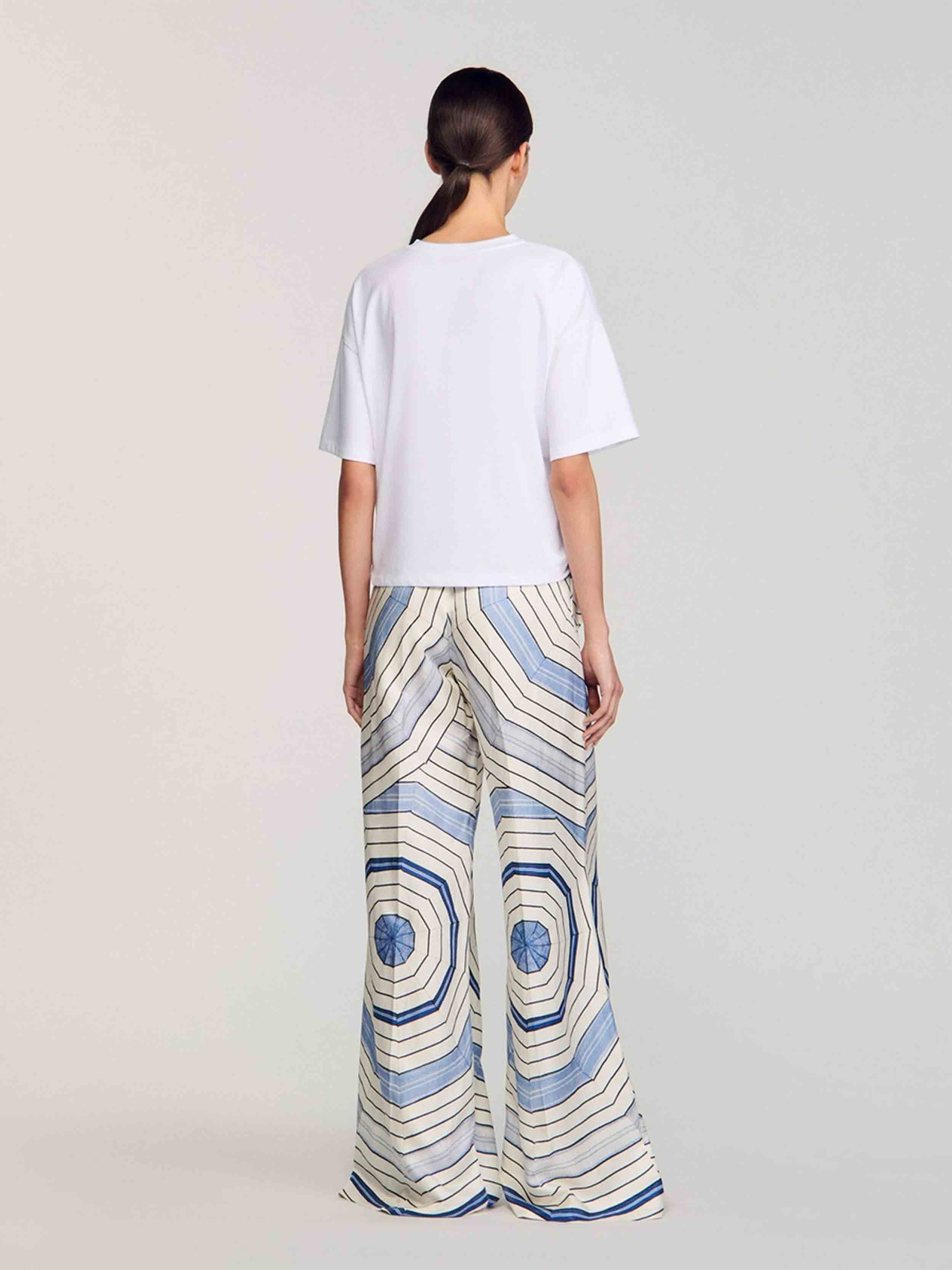 SANDRO - Geometric Pattern Cotton T-Shirt