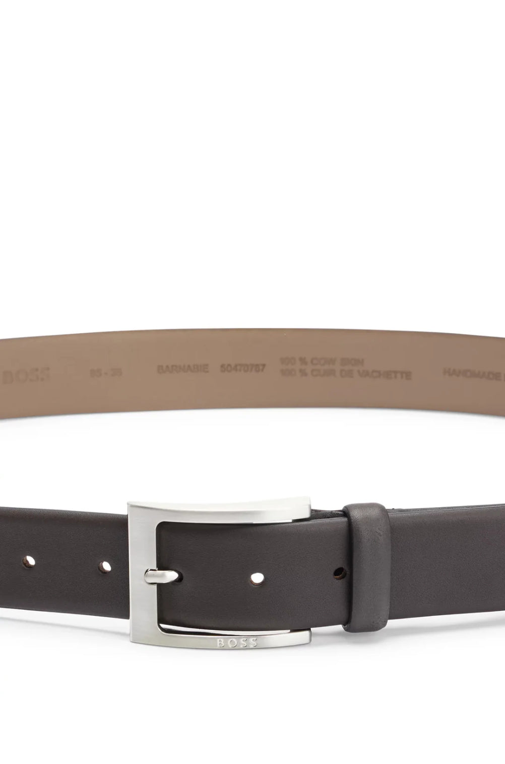 • A timeless belt by BOSS. Securing with a pin buckle in brushed and polished finishes, this refined belt is crafted in nappa leather with a rich look and feel. A BOSS logo is engraved into the hardware for a distinctive touch. For the best fit, we advise ordering a belt one size larger than your waist size.