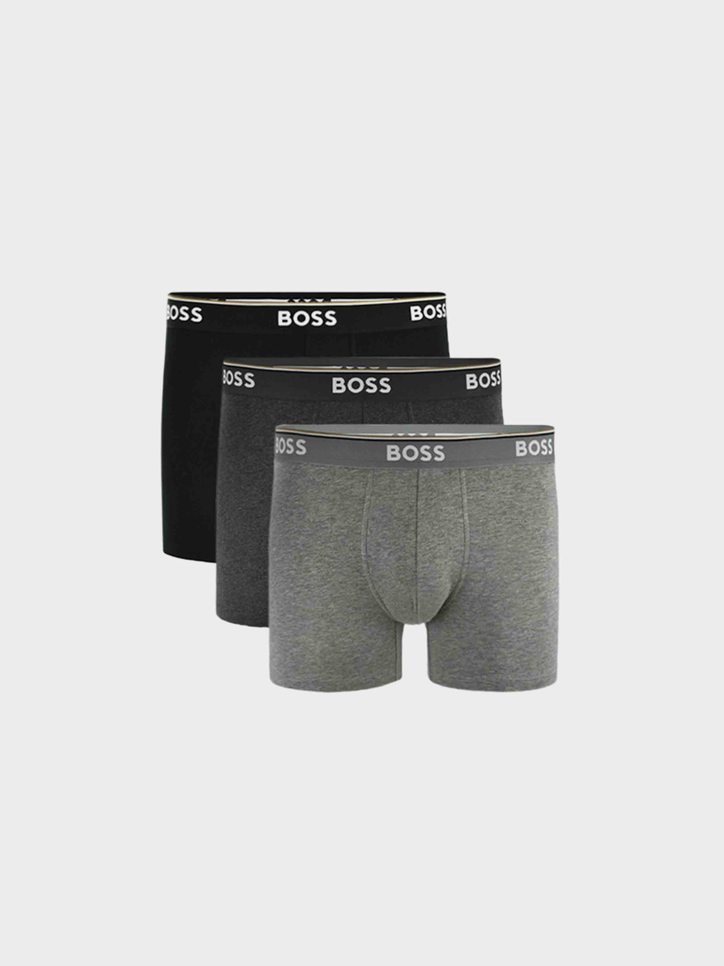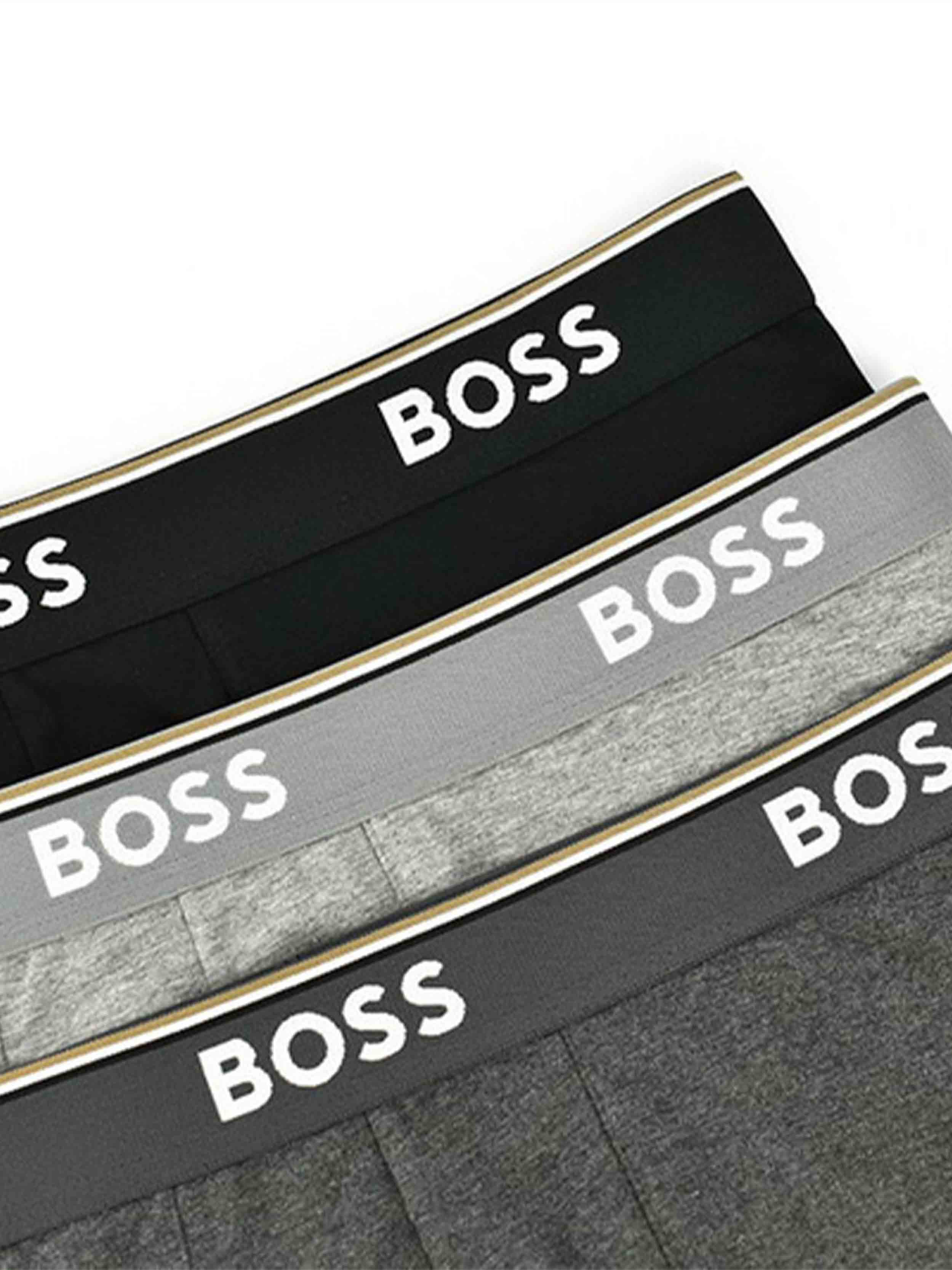 • Three pairs of boxer briefs by BOSS. Crafted in soft cotton blended with a touch of stretch to offer ultimate comfort, these boxer briefs are topped with an exposed waistband that sits at a regular rise. A signature stripe and repeat BOSS branding complete each pair.