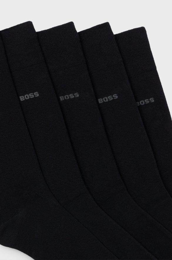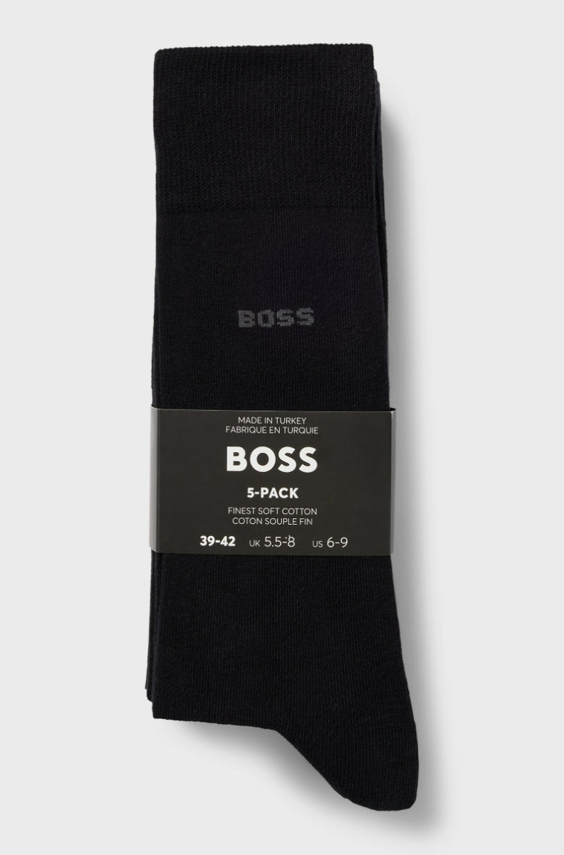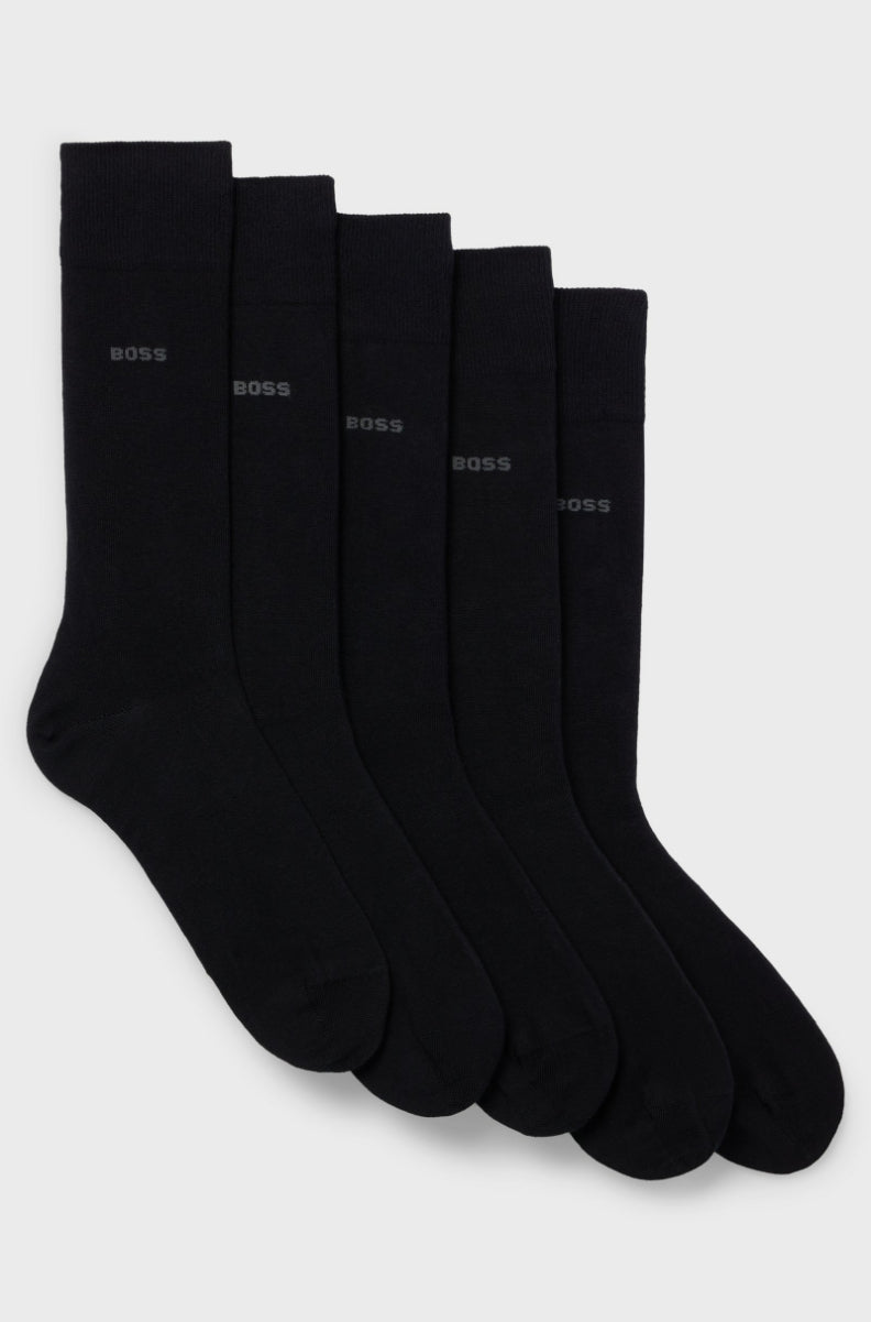 • Five pairs of regular-length business socks by BOSS. Featuring reinforced stress zones for longevity, these socks are crafted in soft yarns that are rich in cotton for everyday comfort. Each pair is detailed with a subtle BOSS logo.