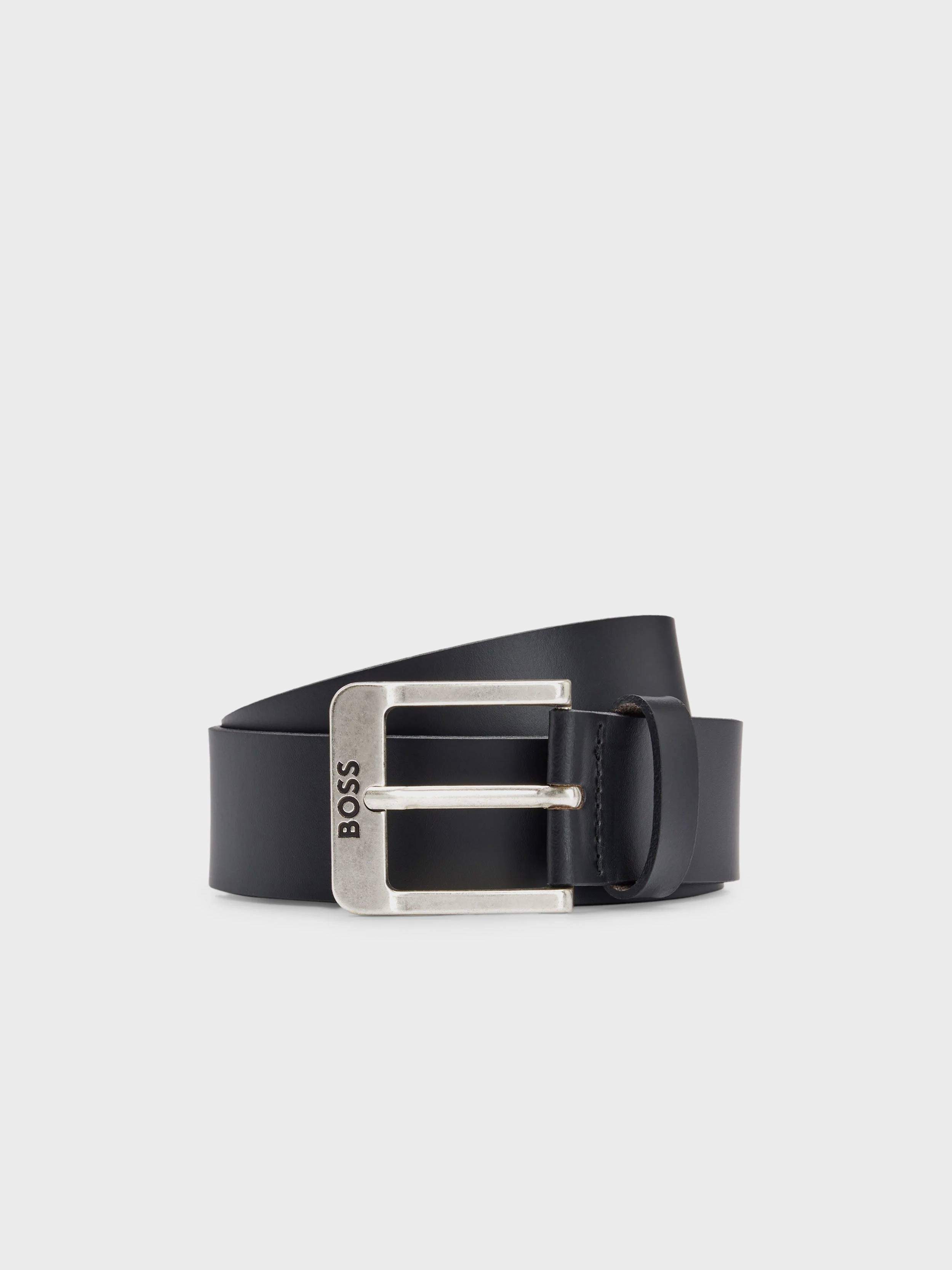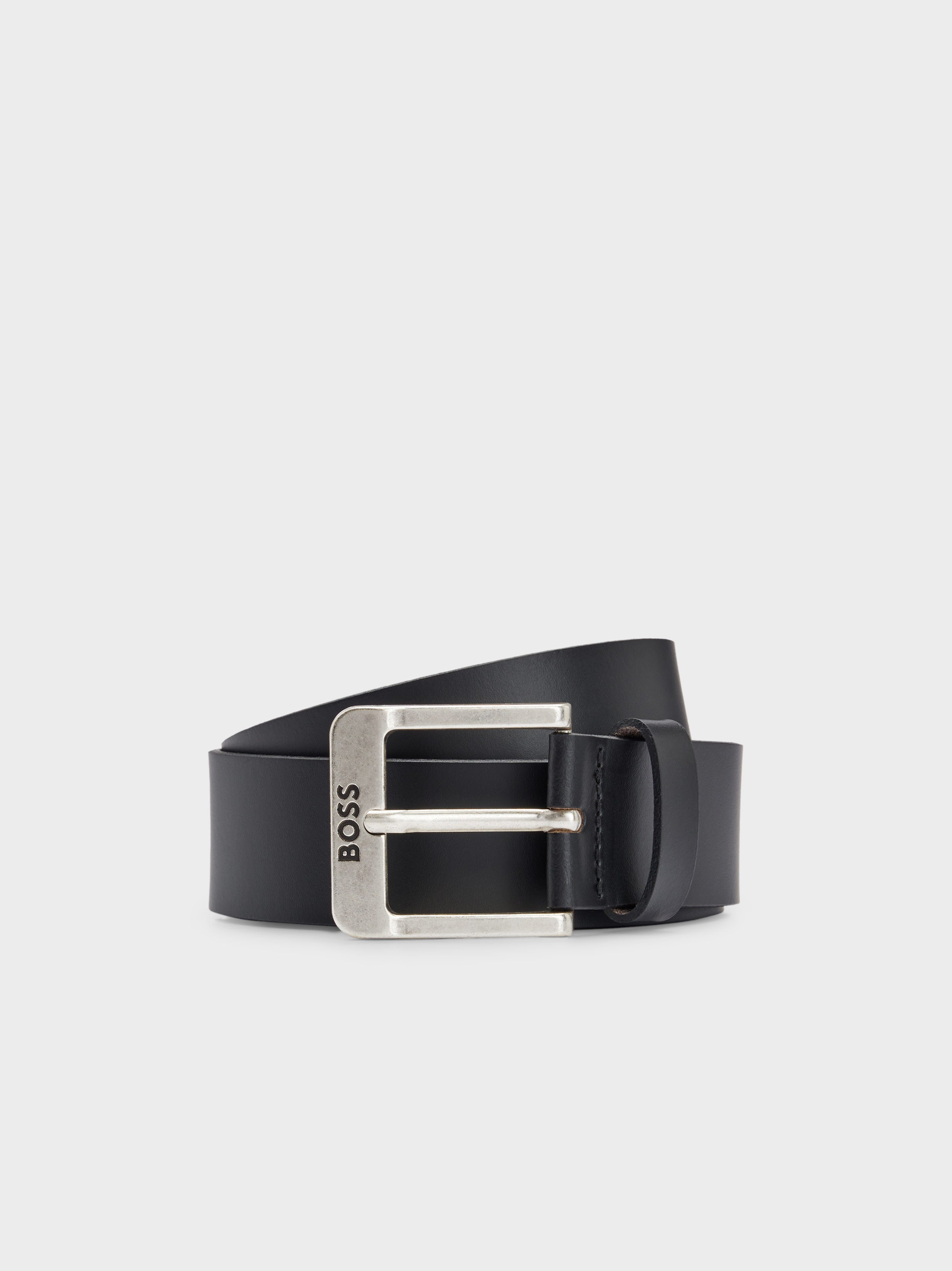 BOSS - Men's Buffalo Leather Belt With Logo Buckle In Silver Hardware