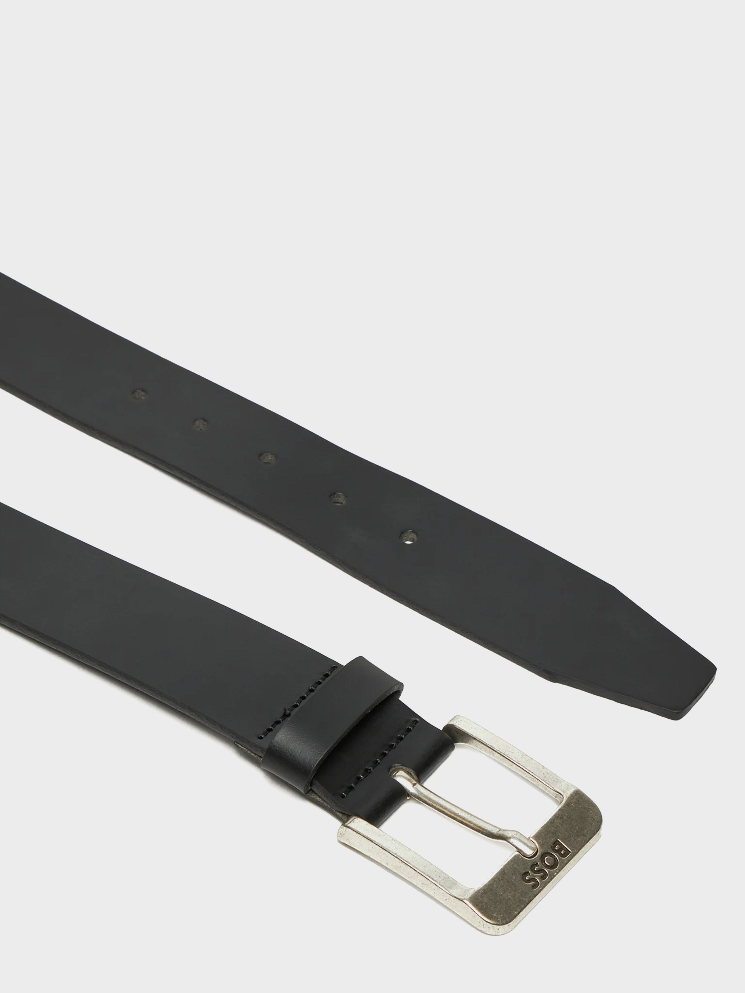 • BOSS - Men's Buffalo Leather Belt With Logo Buckle In Silver Hardware
