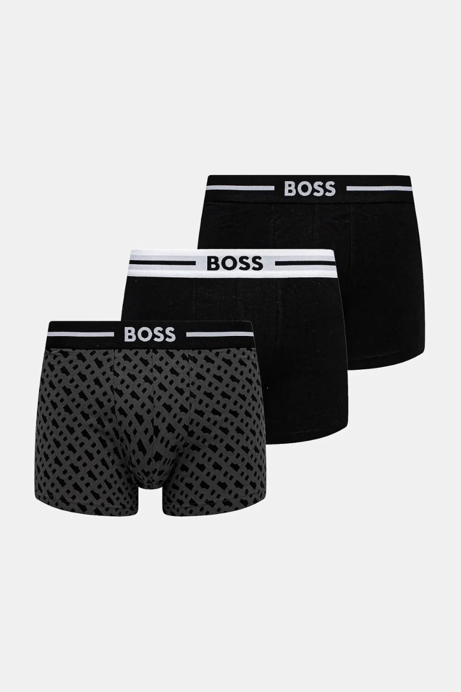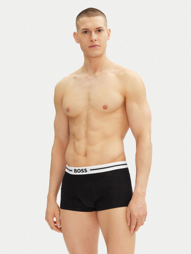 • Offering plain and monogram-patterned options, this three-pack of BOSS Menswear trunks is ideal for everyday dressing. Made from breathable stretch jersey. Logo waistbands. This product is partly made with . Our standards do not allow the use of synthetic fertilizers, pesticides or genetically modified seeds.