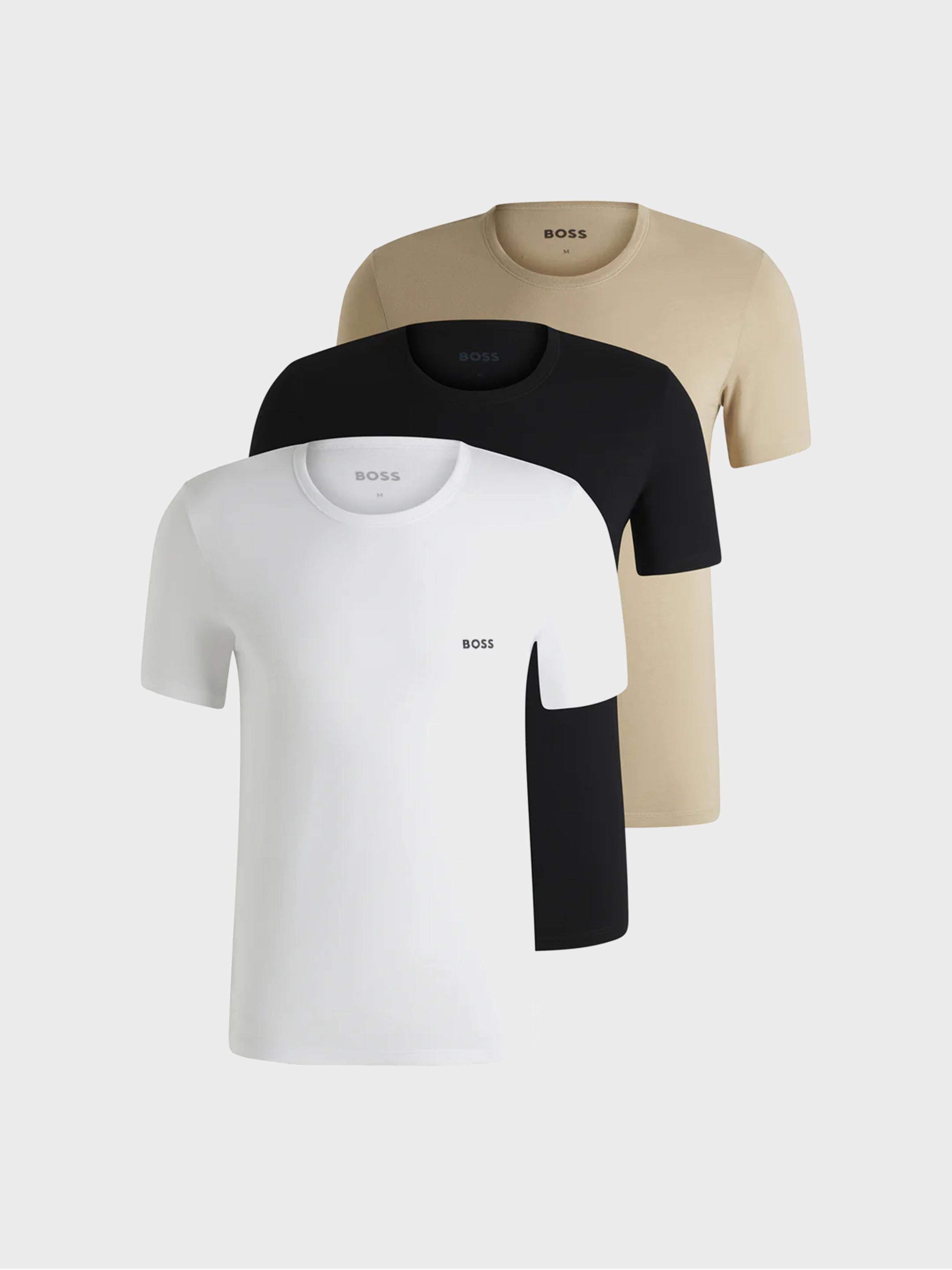 • BOSS - Men's Pack Of 3 Cotton Underwear T-Shirts With Logo Embroidery