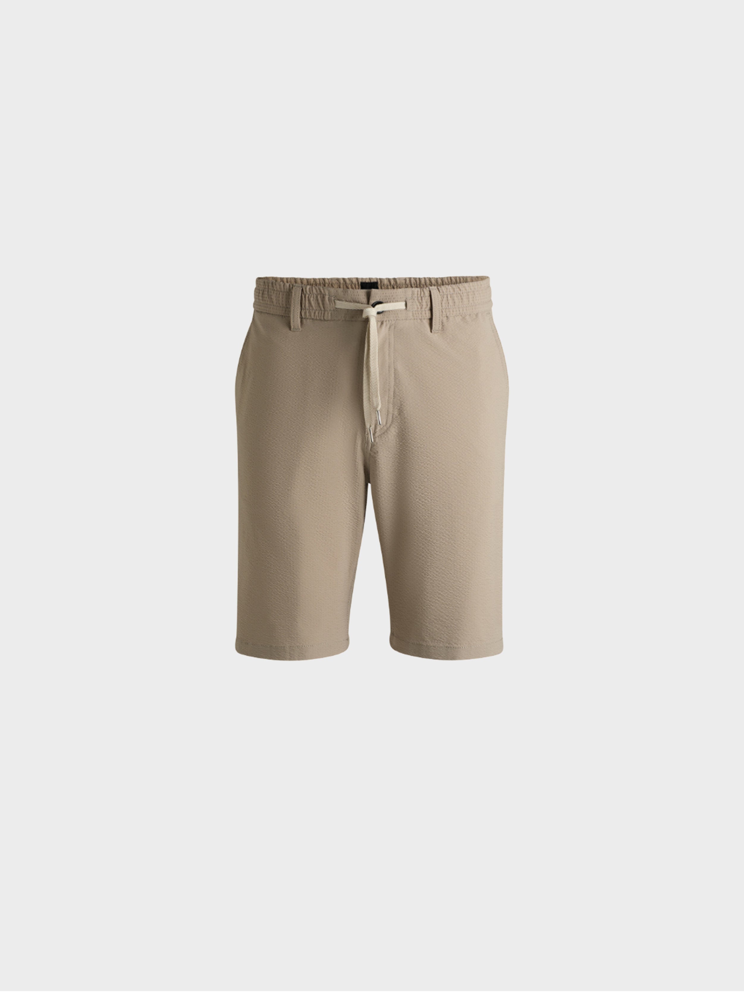 • inch sizing / tapered fit shorts / inside-outside drawstring / techno seersucker / comfort stretch