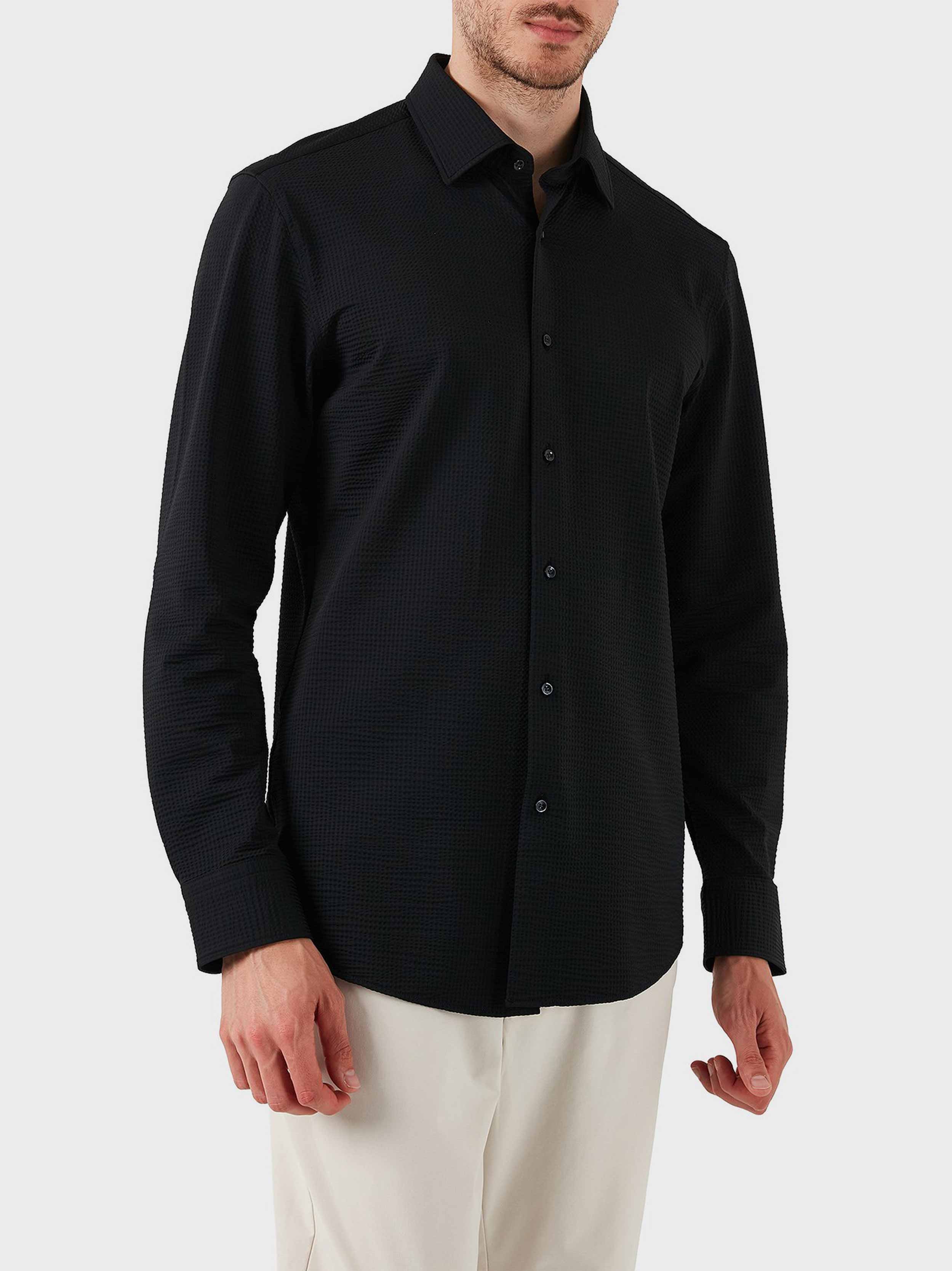 BOSS - Men's Textured Slim Fit Long Sleeve Shirt