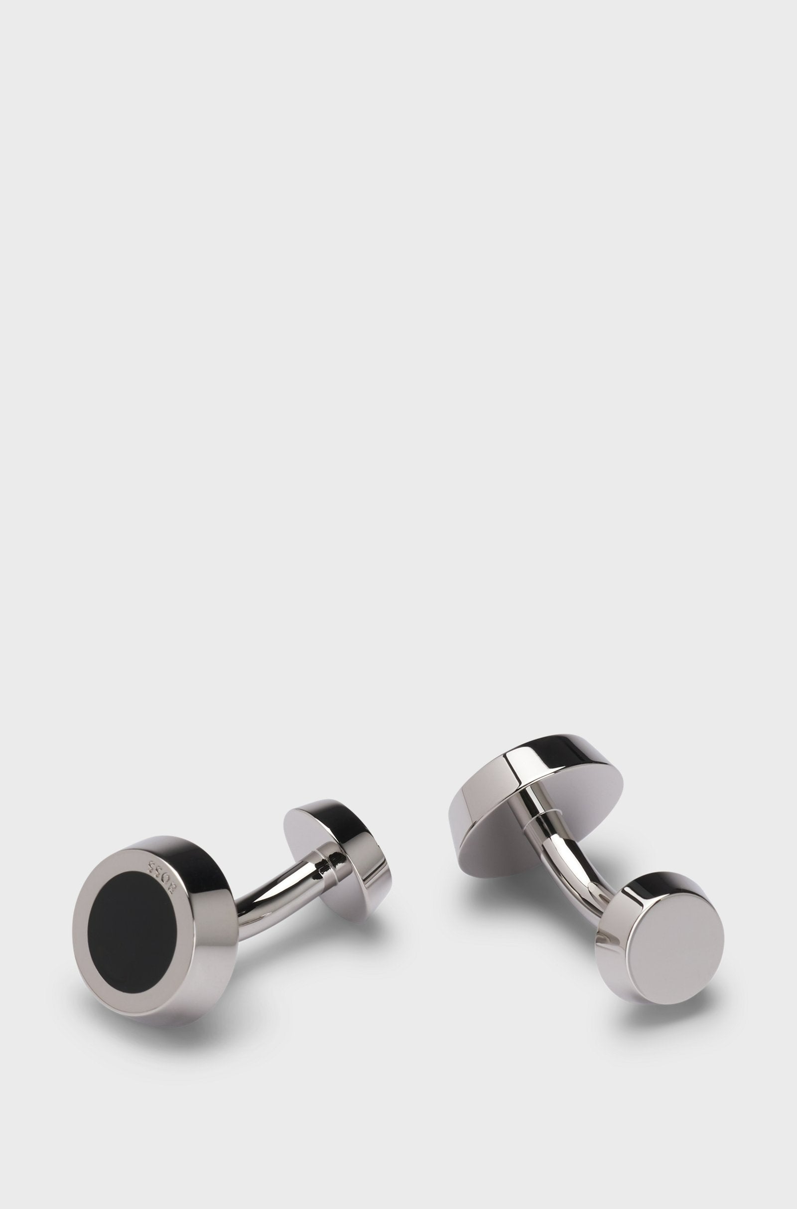 BOSS - Men's Round Cufflinks With Black-Enamel Insert