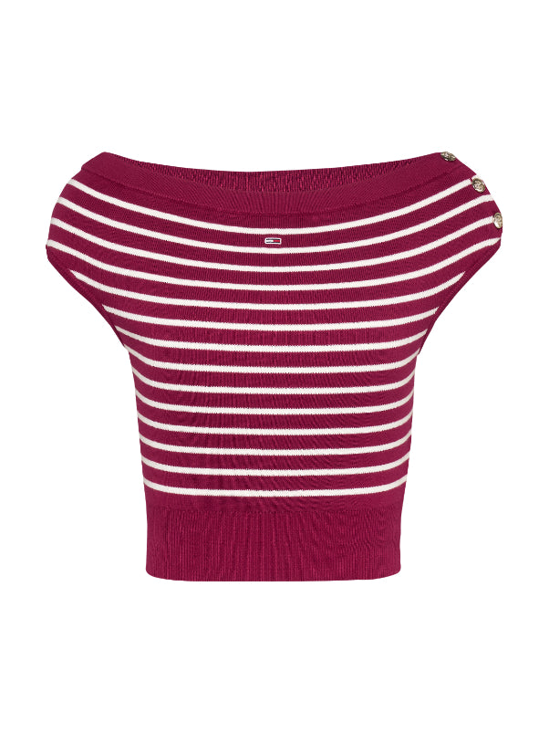 Tommy Hilfiger - TJW OFF SHOULDER STRIPE SWEATER , S , Brilliant Berry / Stripe , Style DW0DW20252