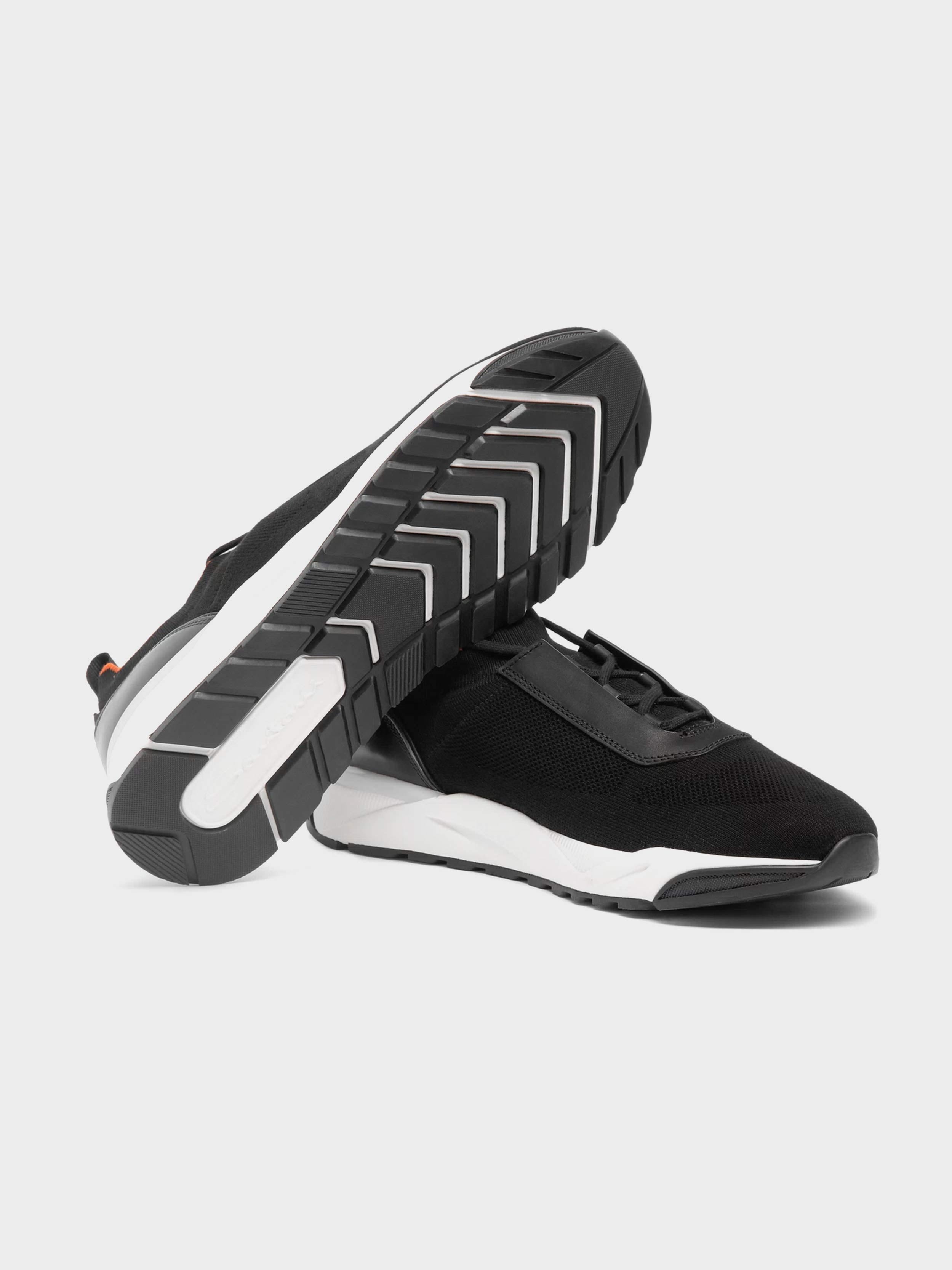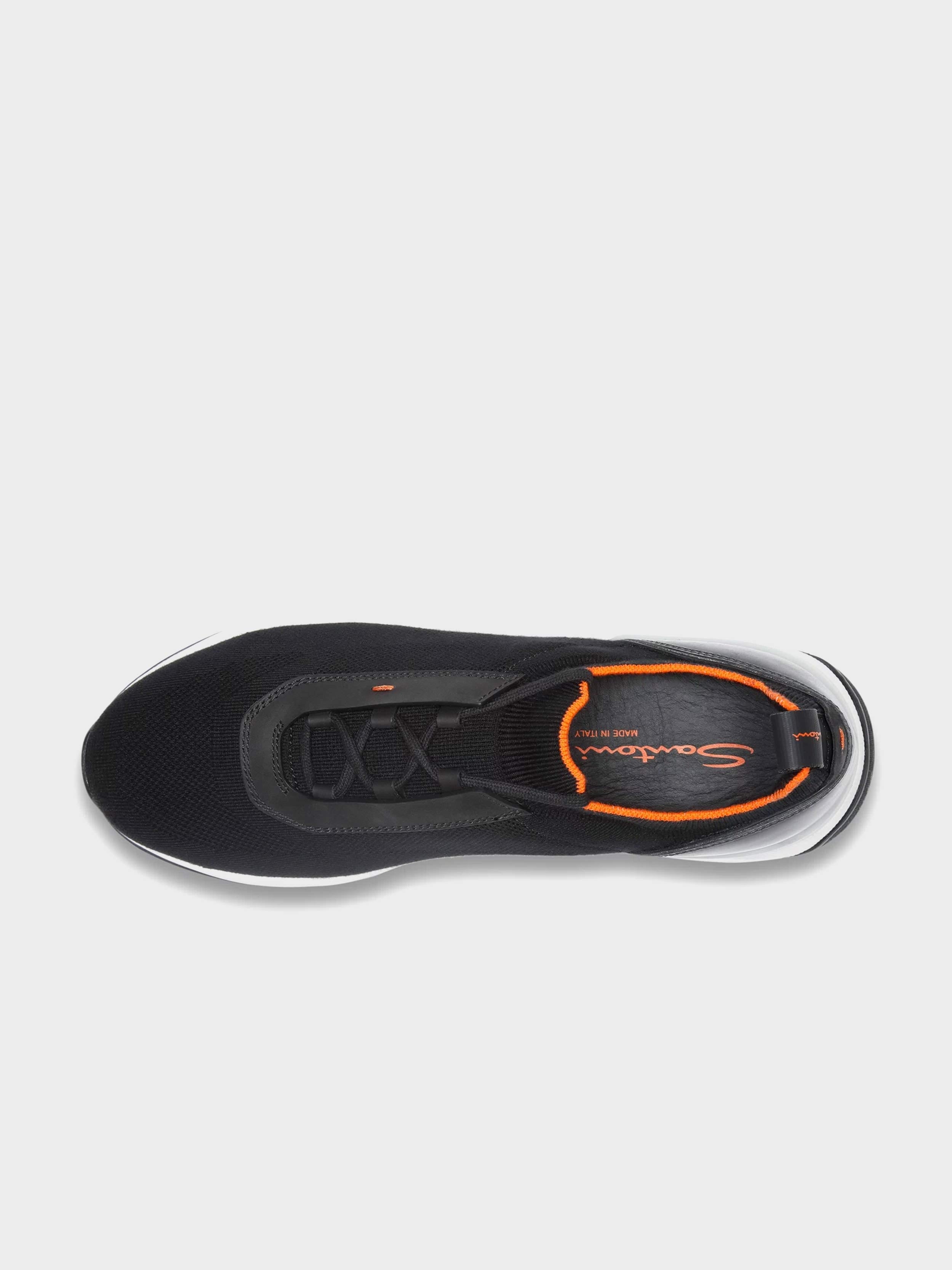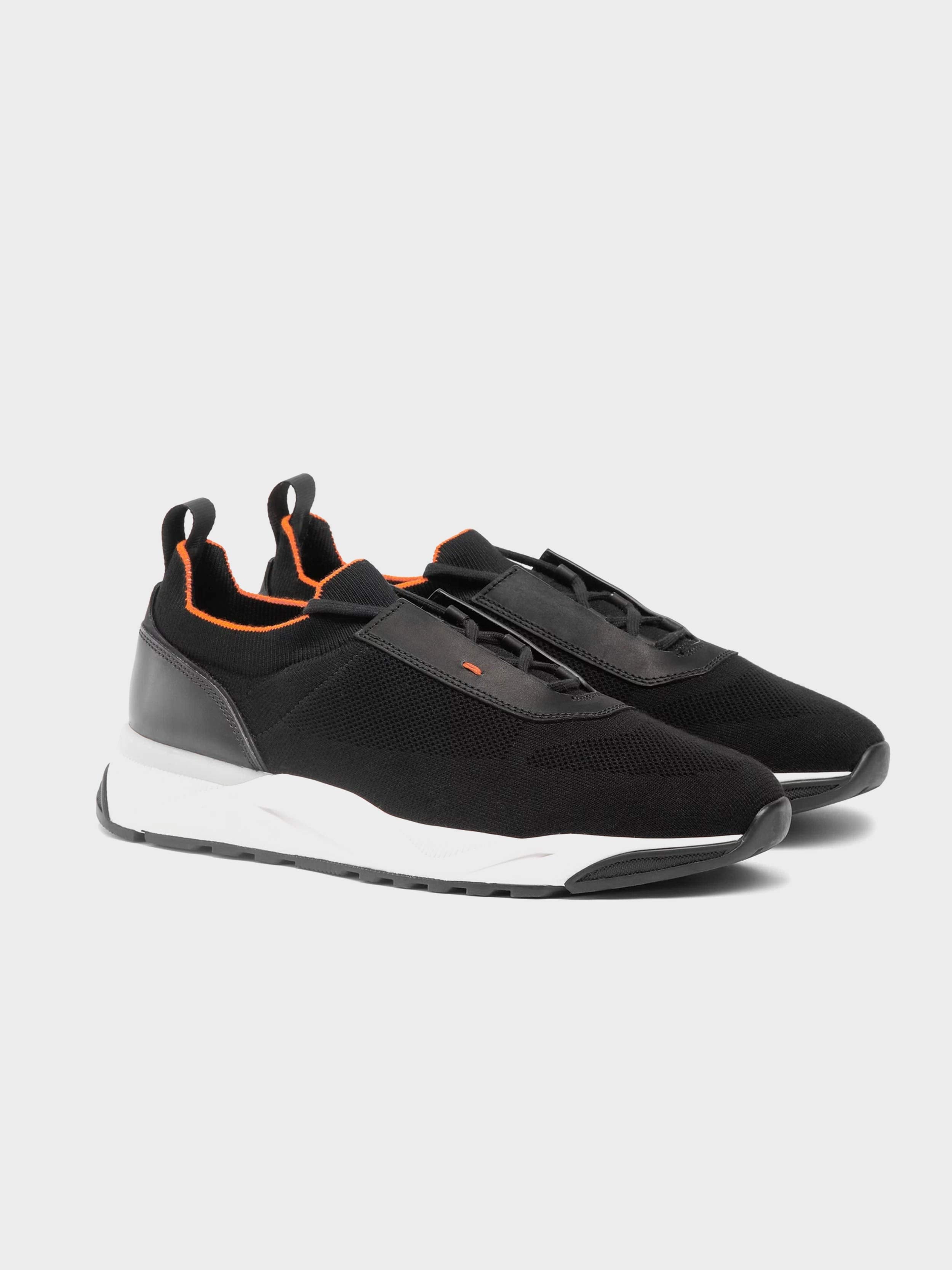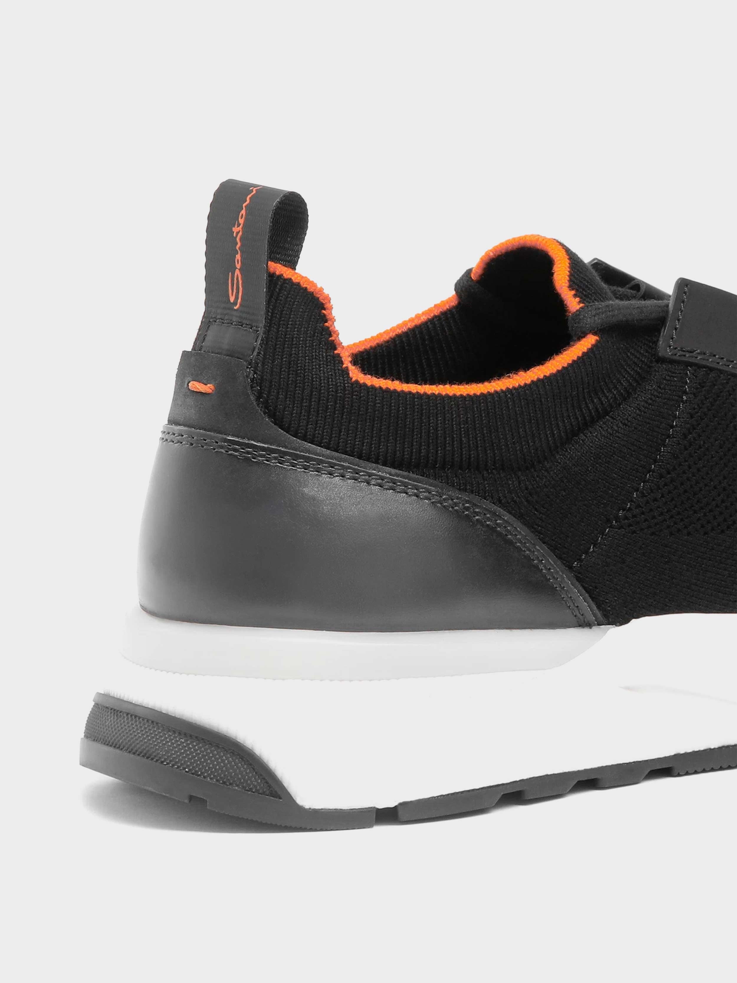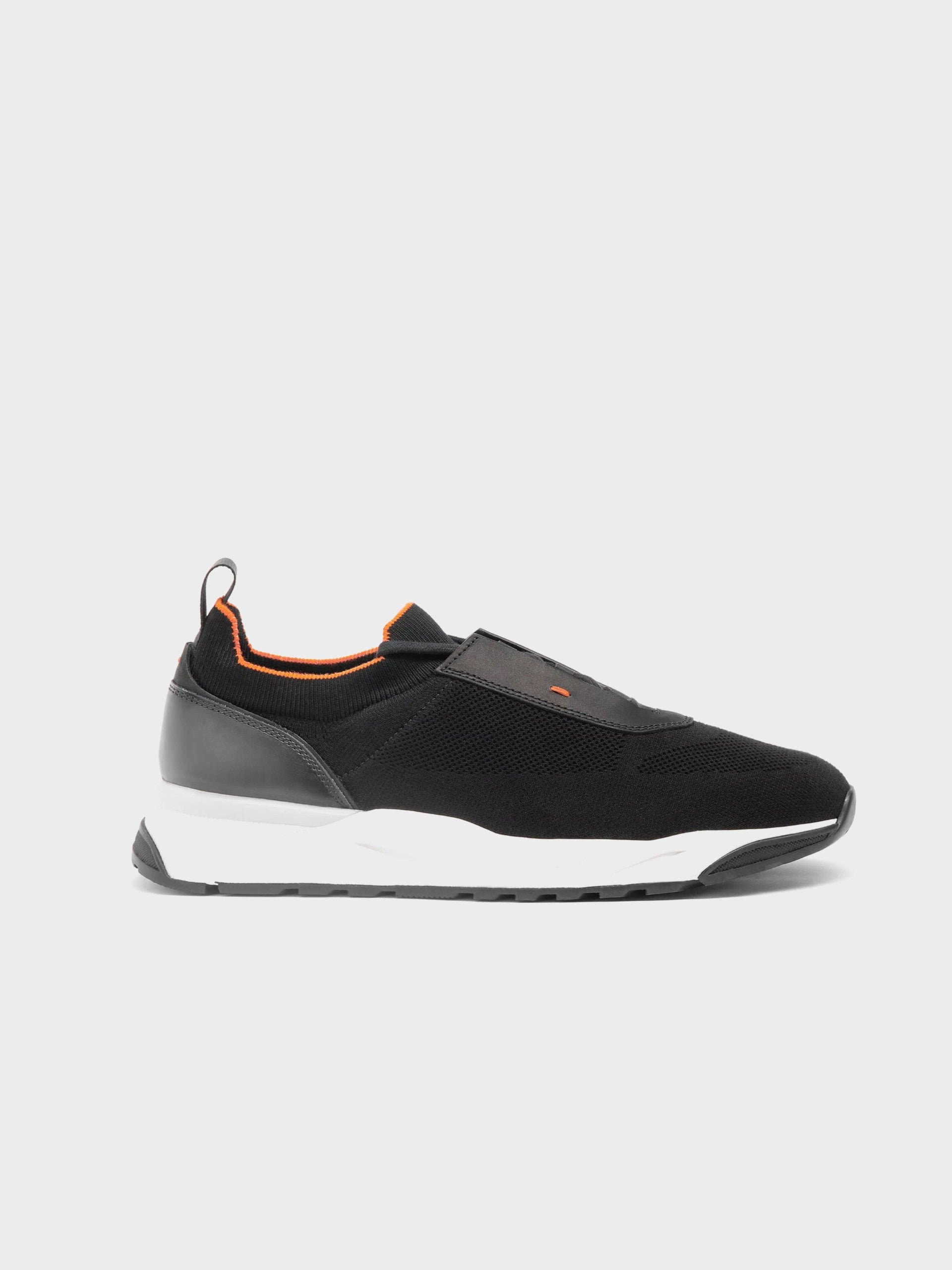 • Dynamic spirit, contemporary attitude and heritage details expressing Santoni’s DNA. This low-top sock sneaker is crafted from stretch fabric with nubuck accents for superior resistance, finished with contrast stitches in celebration of our signature orange tone. Its comfy running-inspired silhouette is enhanced with a chunky rubber sole that supports the movement of the foot, and a rear pull tab that makes it easy to slip on and off.