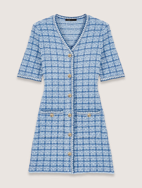 • Short tweed-effect knit dress