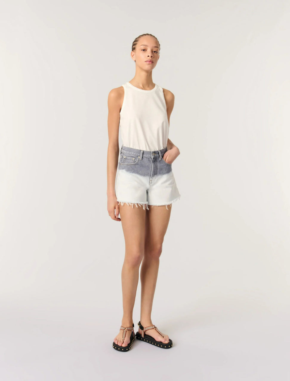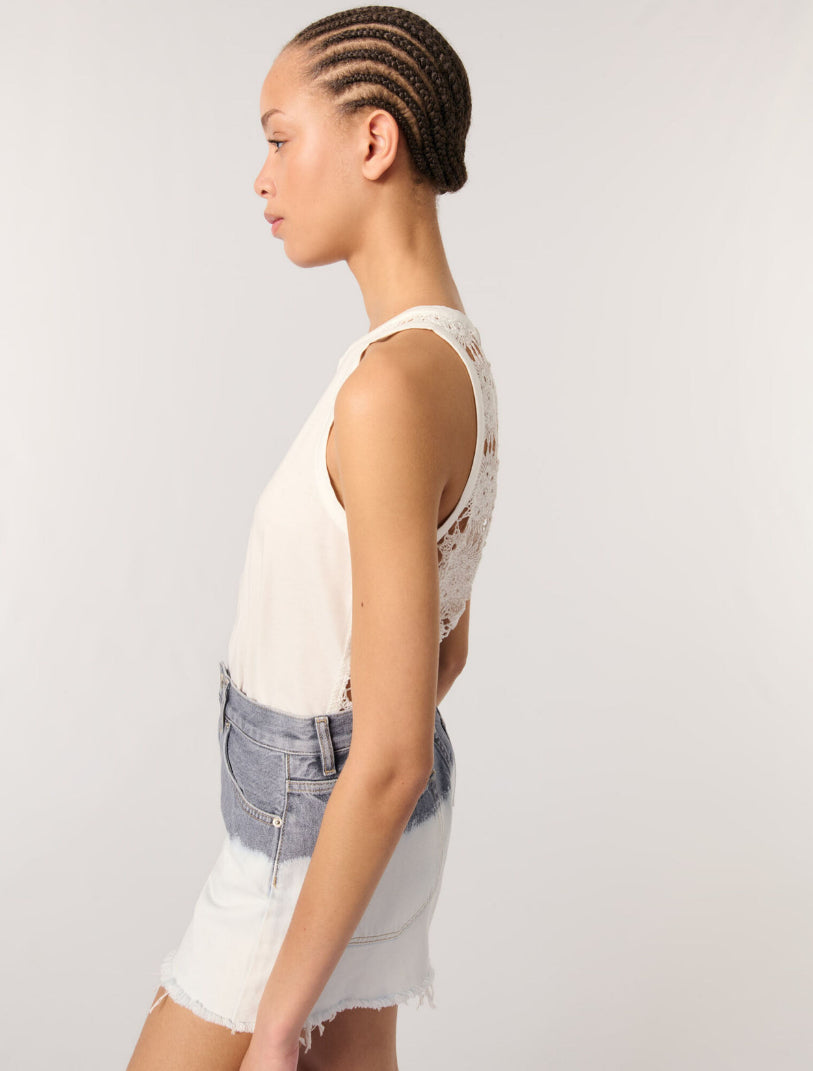 • Faded tie-dye denim shorts