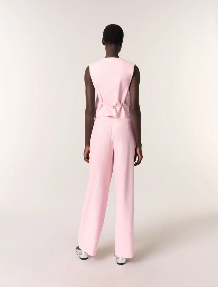 • A key piece for the season, this pastel pink jacket features a V-neckline and two patch pockets. A button fastening and buckle strap at the back elegantly accentuate the waist.
