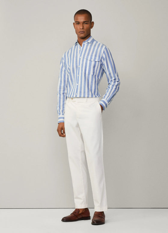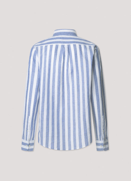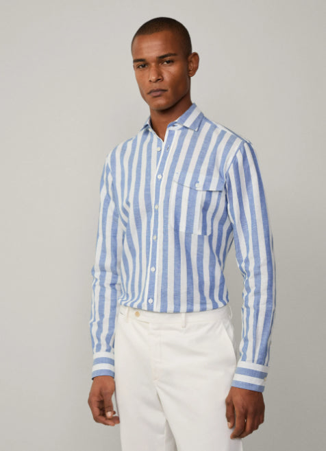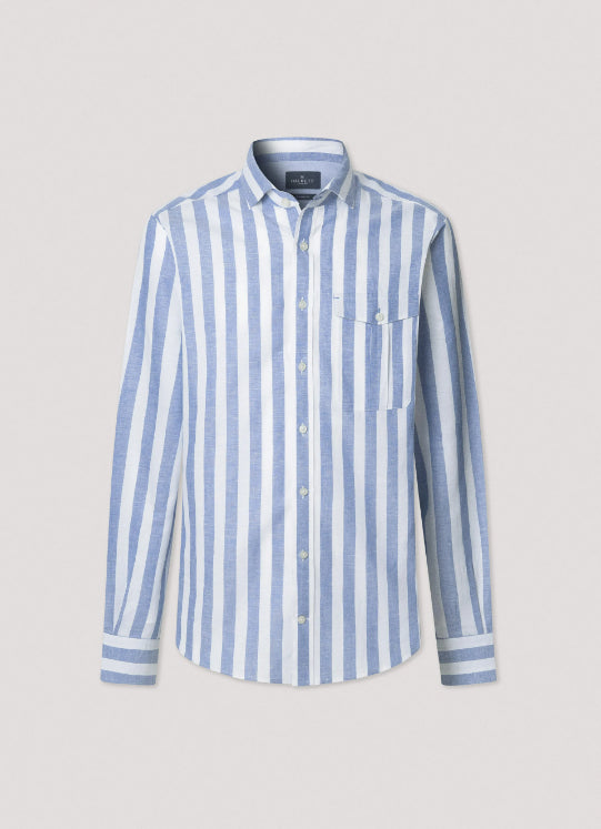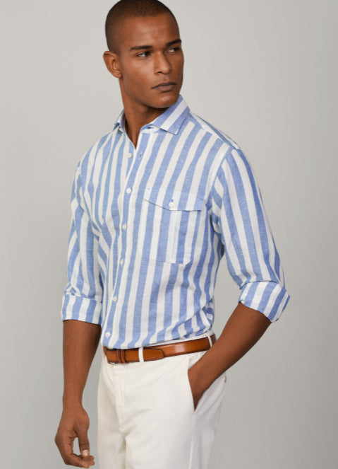 • - Hackett London - Classic fit- Kent cutaway collar, a hallmark of Hackett’s classic shirt styles- Applied placket for a more casual look- Box pleat chest pocket with flap for a classic touch - Bold cotton-linen striped design