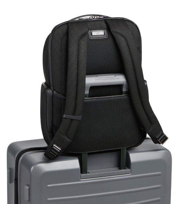 • The Porsche Design Roadster nylon collection catches the eye with smart functionality and an exclusive, technical design. The combination of structured, water-repellent nylon and striking smooth leather details don't just make the Porsche Design Nylon Backpack L a real eye-catcher—this modern business rucksack is also the ideal choice for your daily commute.