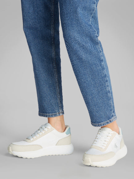 Calvin Klein - ATHLEISURE RUNNER LACEUP MIX WN , 41 , Bright White/Creamy White/Cloud Blu , Style YW0YW01774