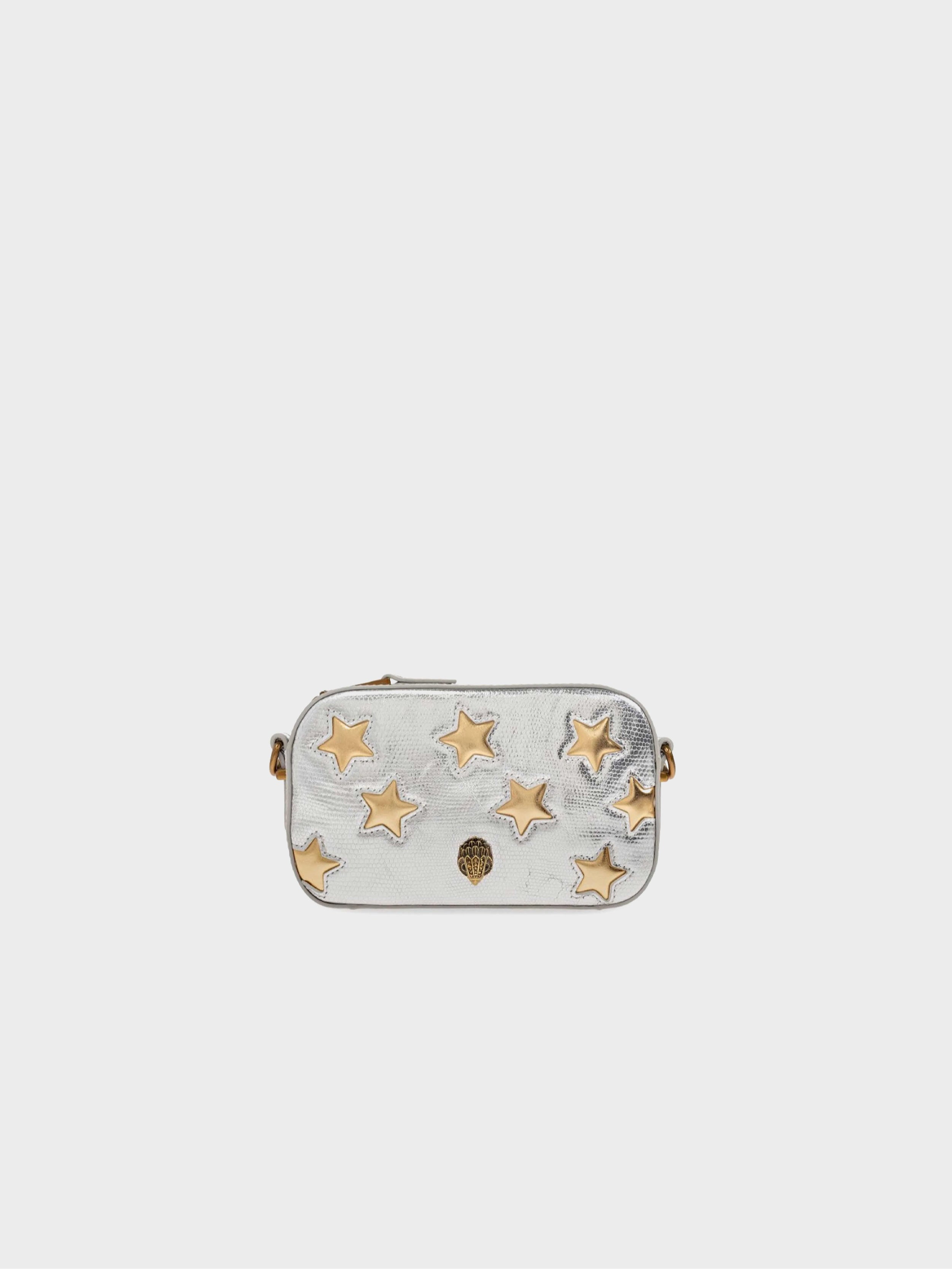 • The Star Kensington Camera Bag features a snake embossed leather with gold leather stars.