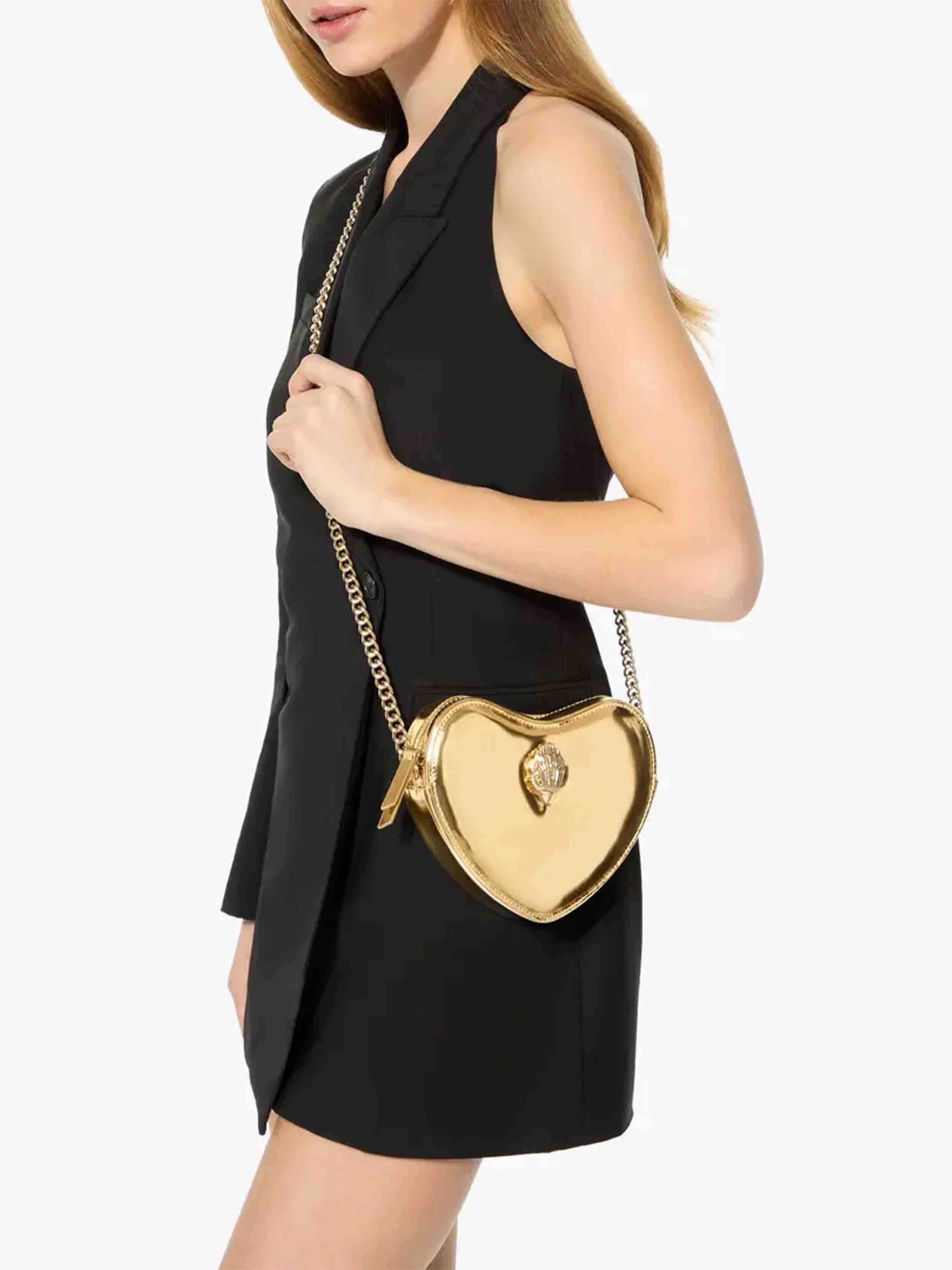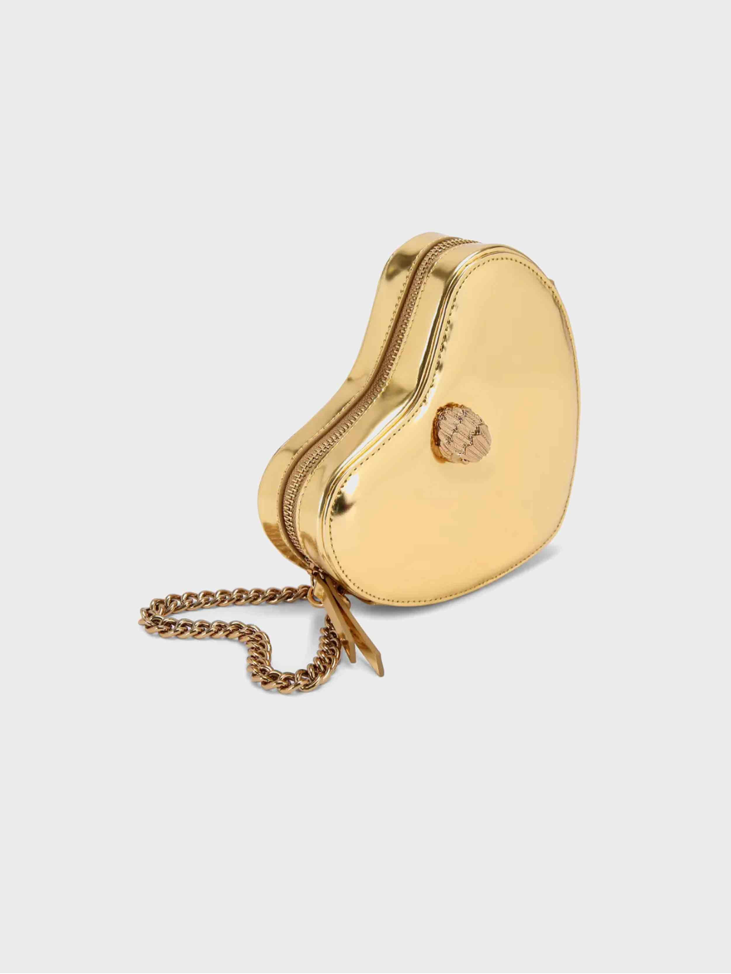 • The Kensington Heart Purse is crafted from a metallic gold leather.