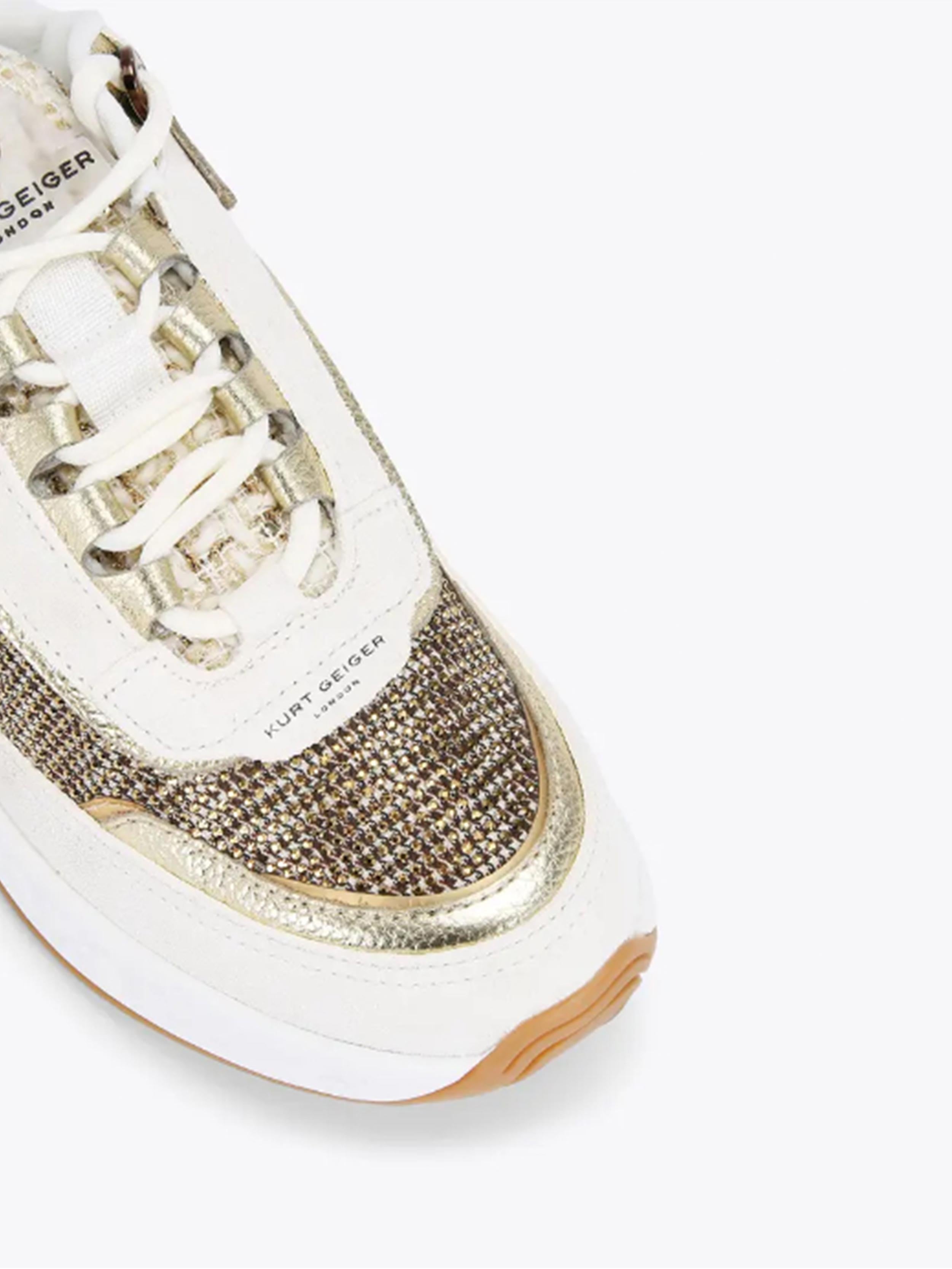 • The Kensington Sneaker features a multi-texture upper including crystal embellished houndstooth and suede eyestay.