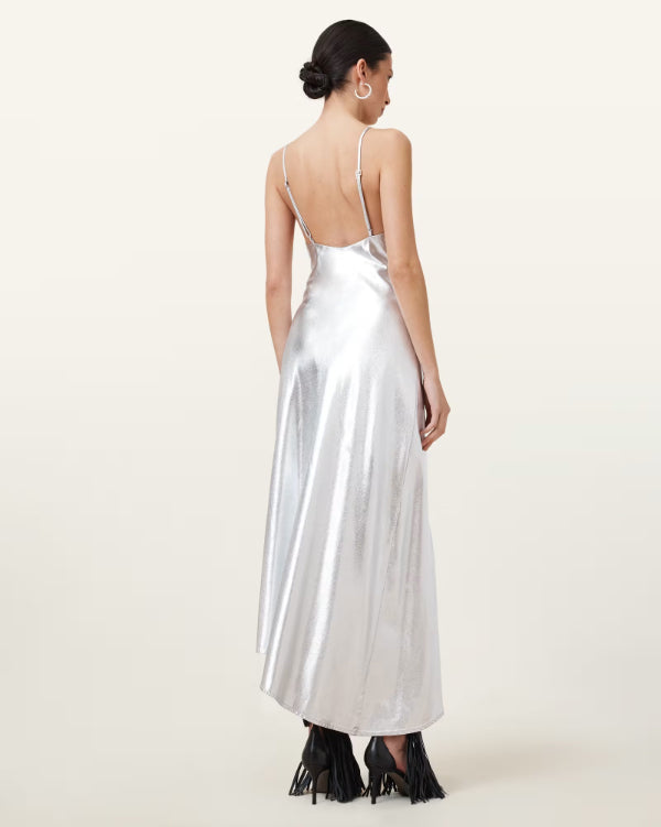 AllSaints - Women's Alexia V-Neck Metallic Midi Slip Dress