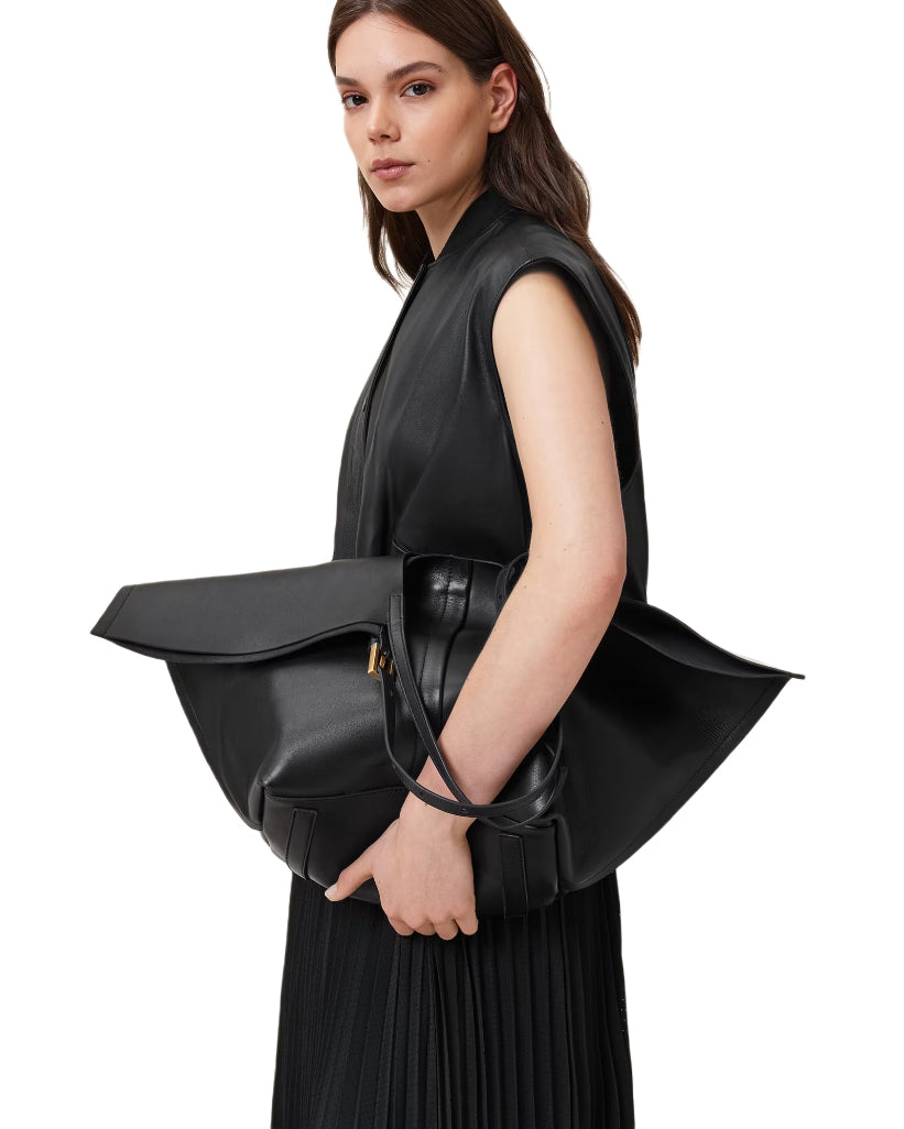 • We heard oversized tote bags are in! Our Ara style is shaped from leather with enough room for all of your on-duty essentials. The cutout armhole means it can fit under your arm with ease and the straps are adjustable too.