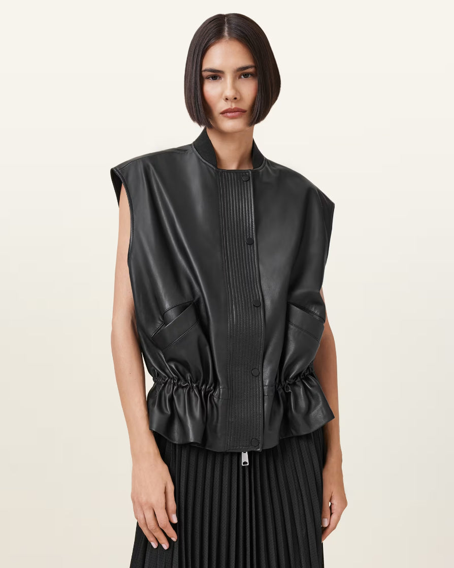 • AllSaints - Women's Sofi Relaxed Fit Leather Gilet