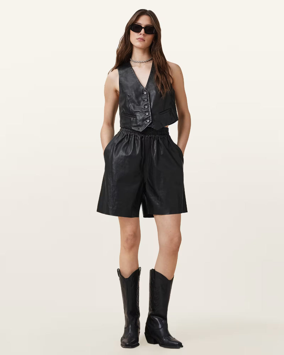• AllSaints - Women's Arla Lea Leather Waistcoat