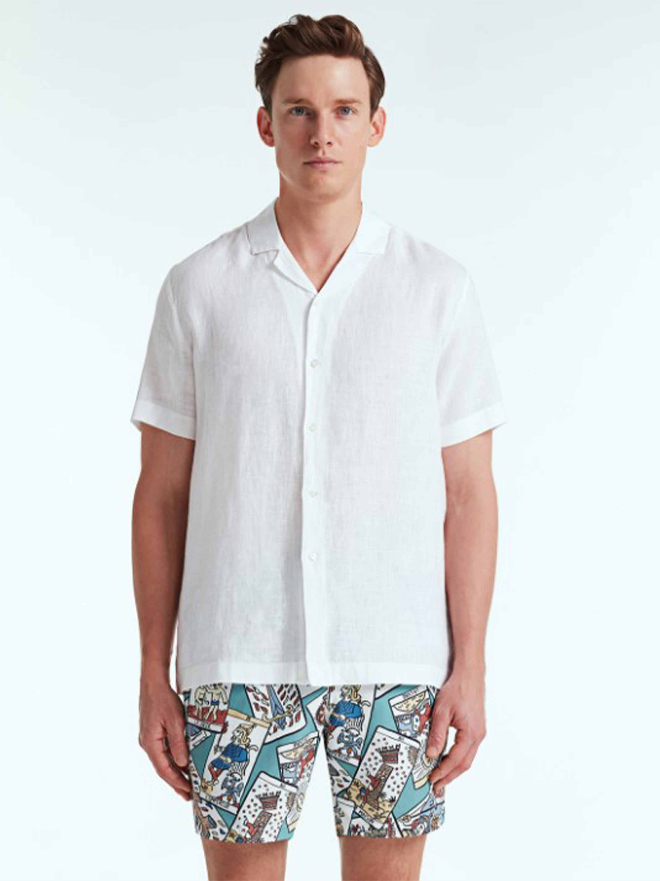 • Mars is made with a contemporary twist on the classic bowling shirt. This trans-seasonal button-down shirt is made of lightweight, soft-to-the-touch linen and features a point collar and a traditional straight comfort fit.