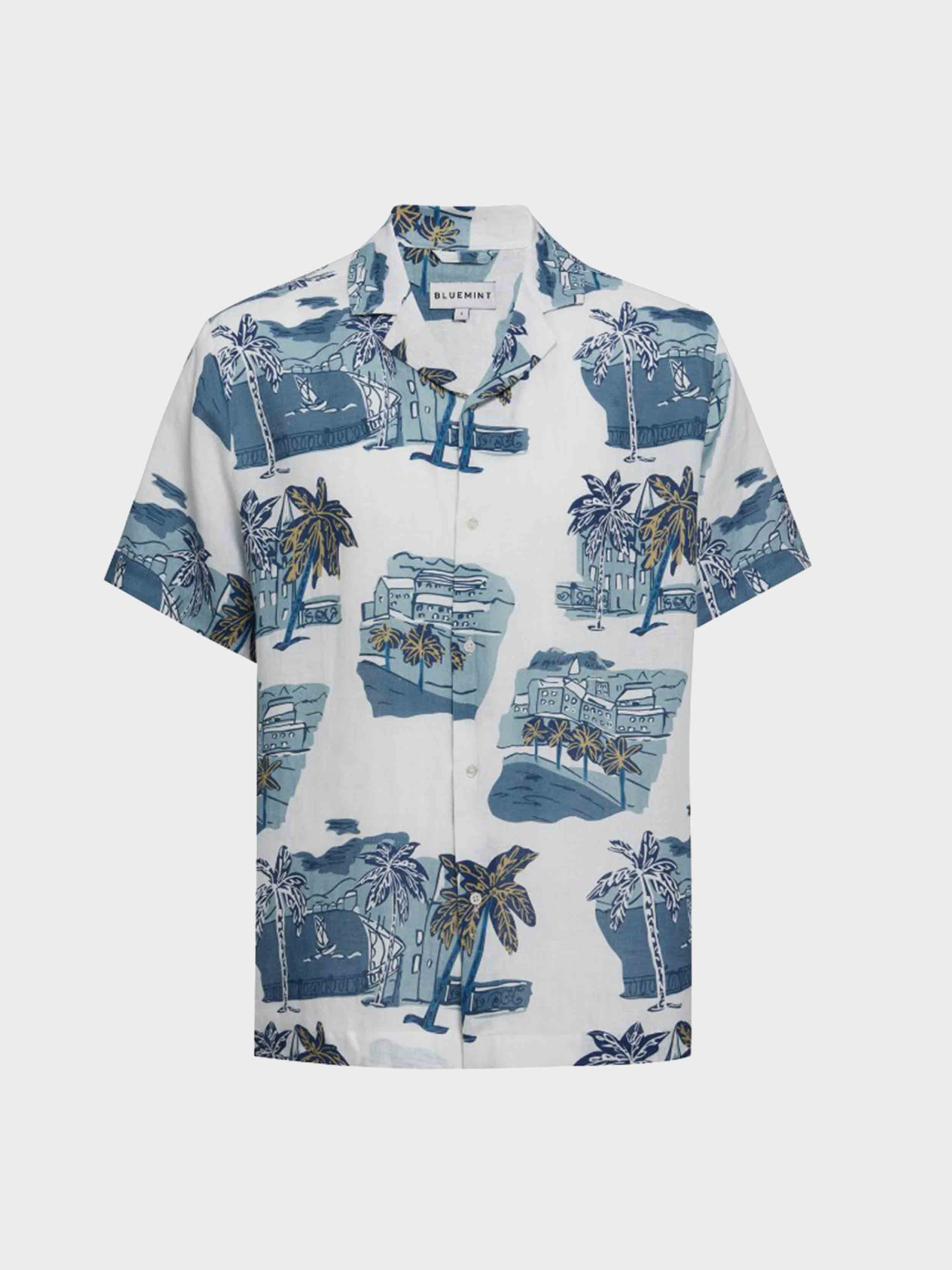 • BLUEMINT - Men's Short Sleeve Camp-Collar Linen Shirt