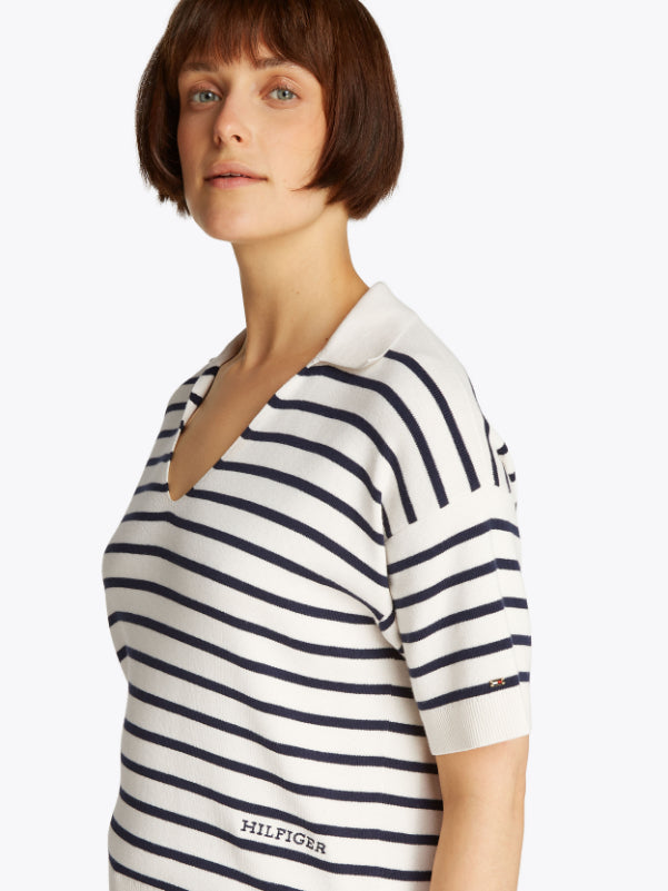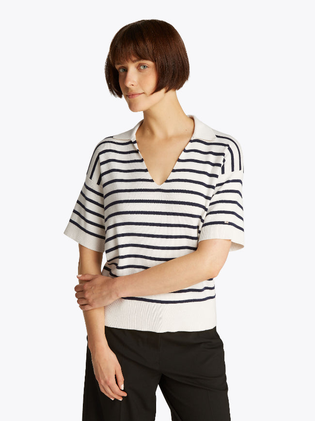 Tommy Hilfiger - Women's Loose Fit Stripe Polo Sweater