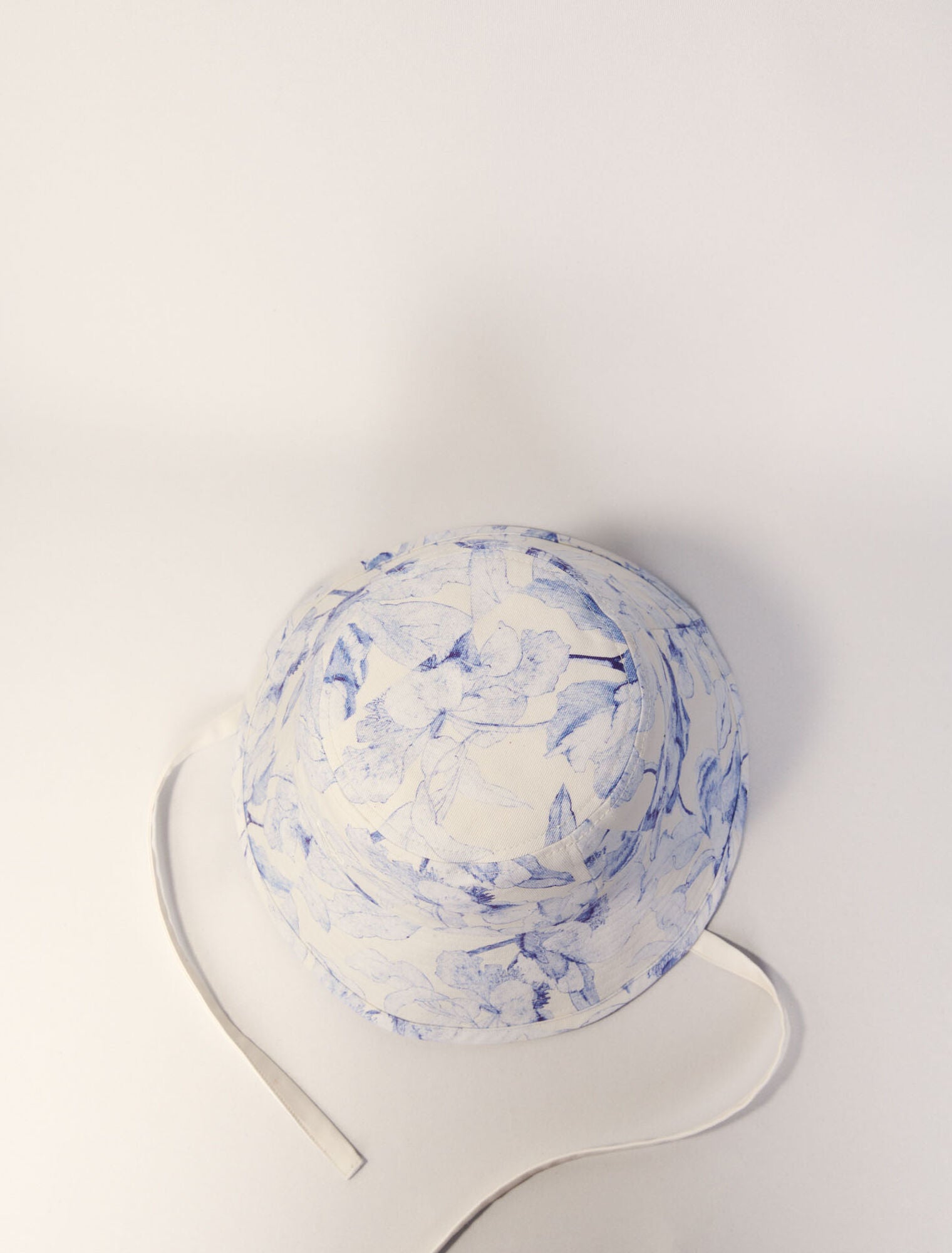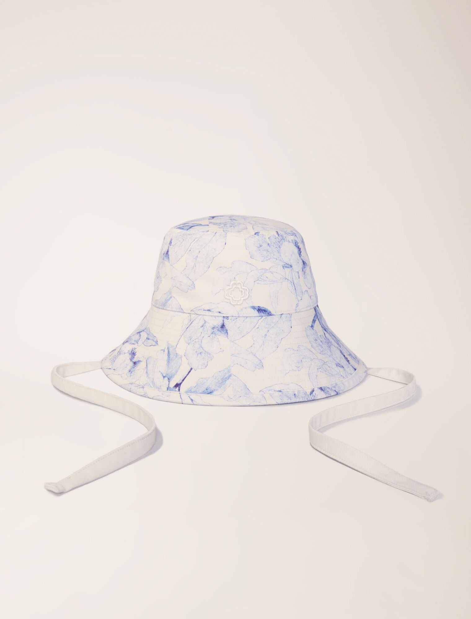 • A warm-weather essential with a romantic twist. This long cotton bucket hat features a peony blue motif with a watercolour effect and Clover embroidery. Adjustable drawstrings and tabs ensure a perfect fit.