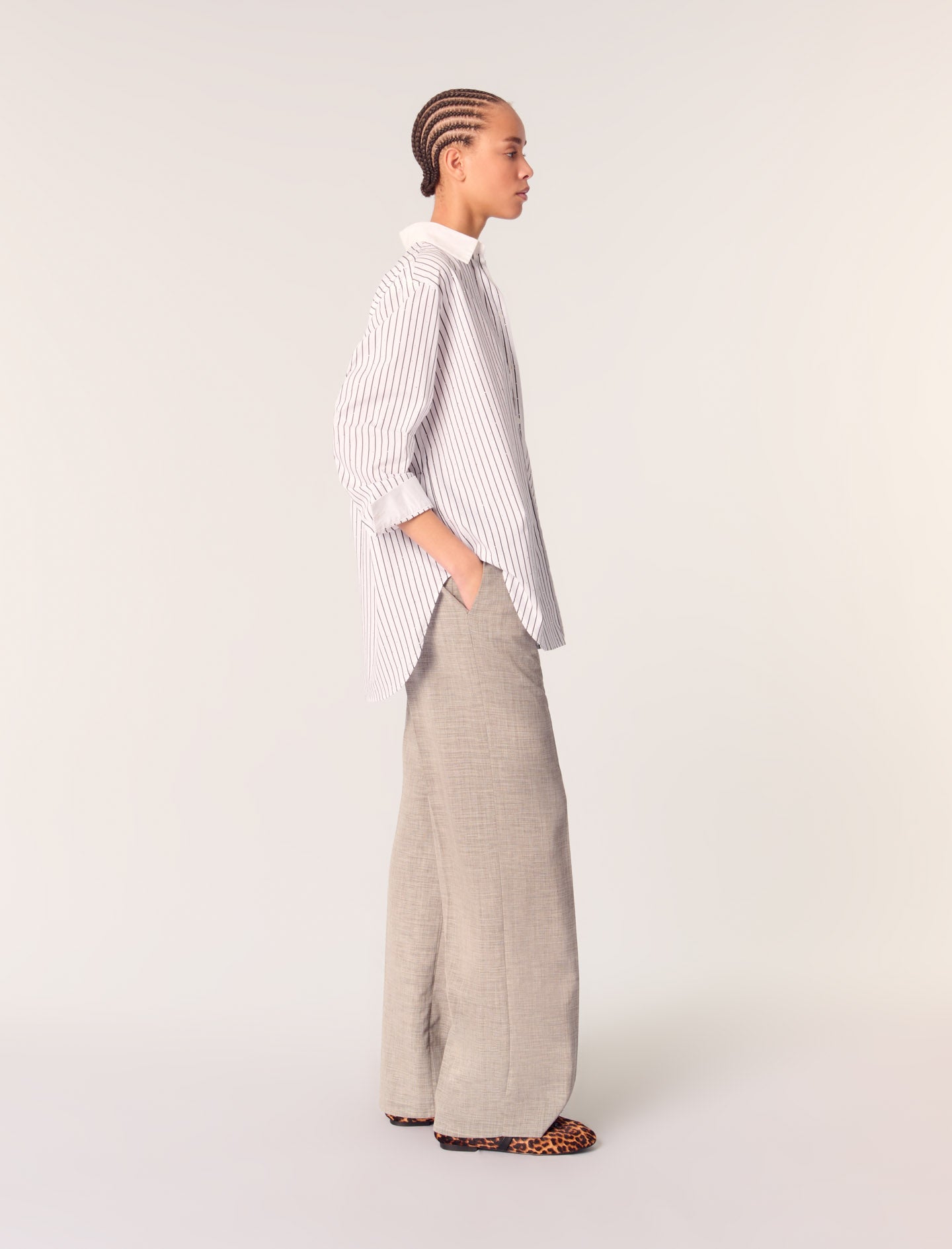 • Pair it with wide-leg trousers and ballet flats for a light, flowing look.