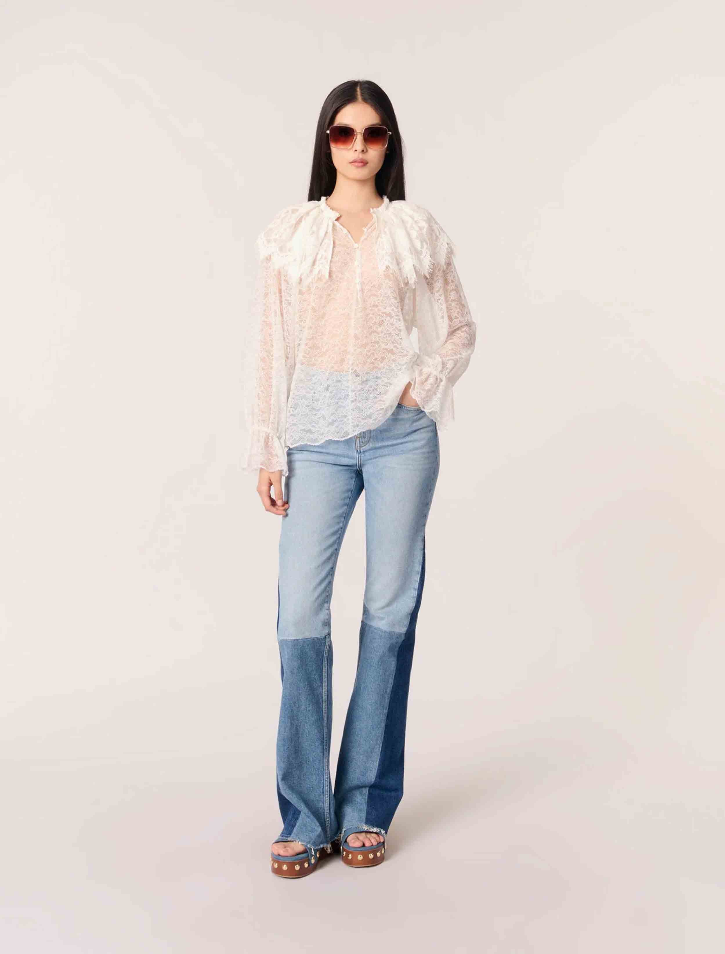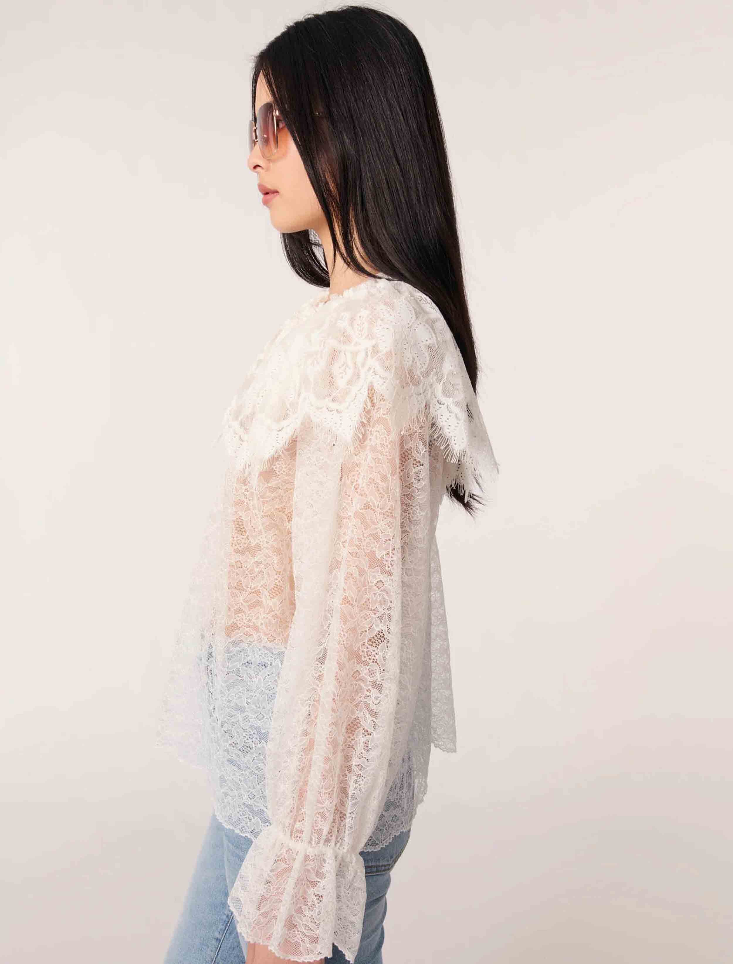• Semi-sheer lace blouse