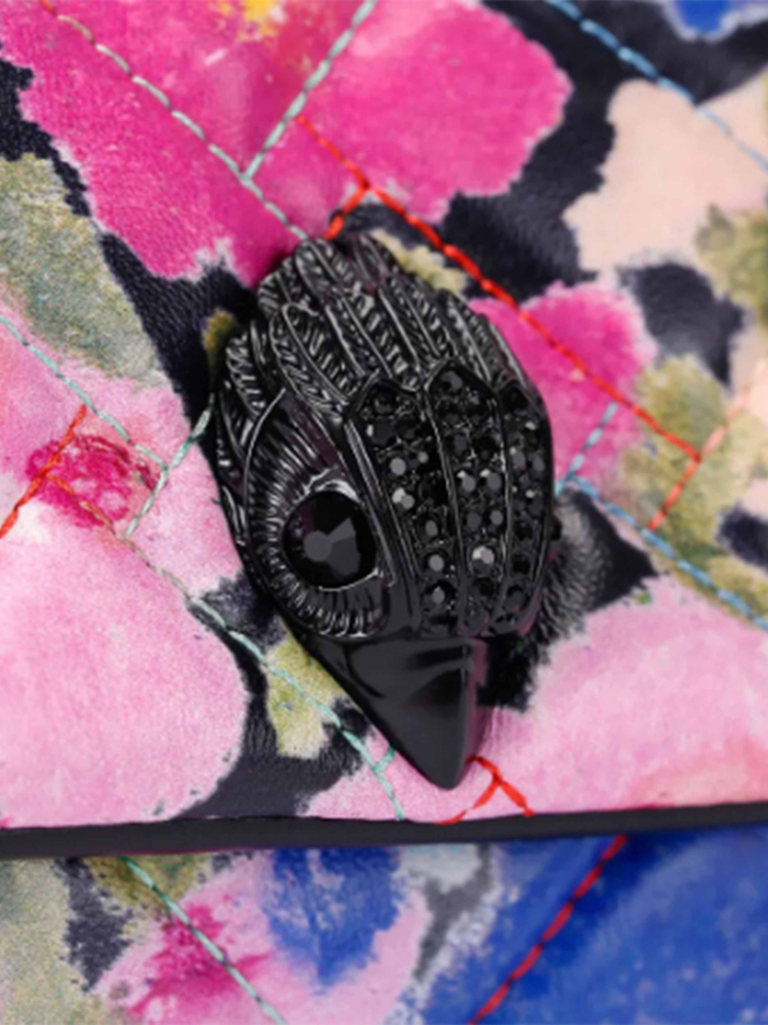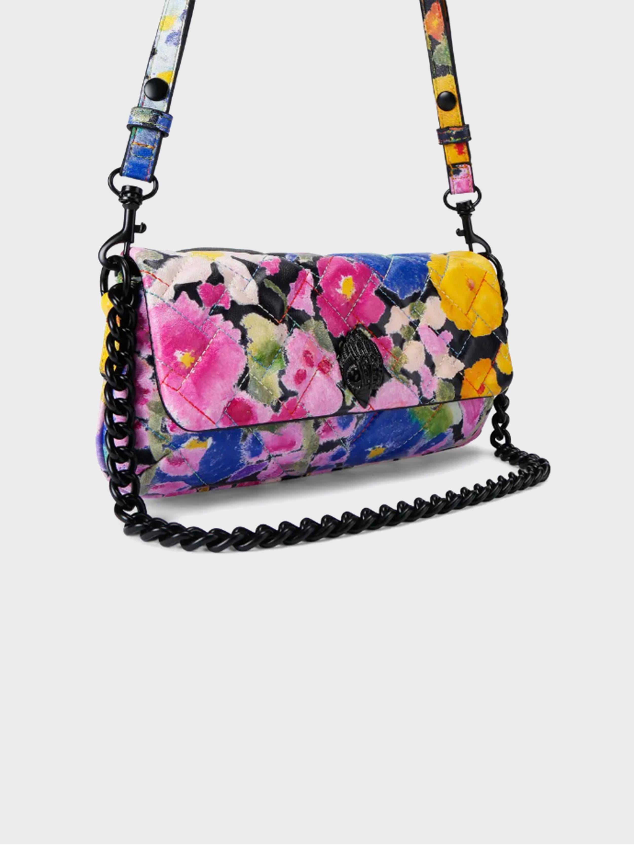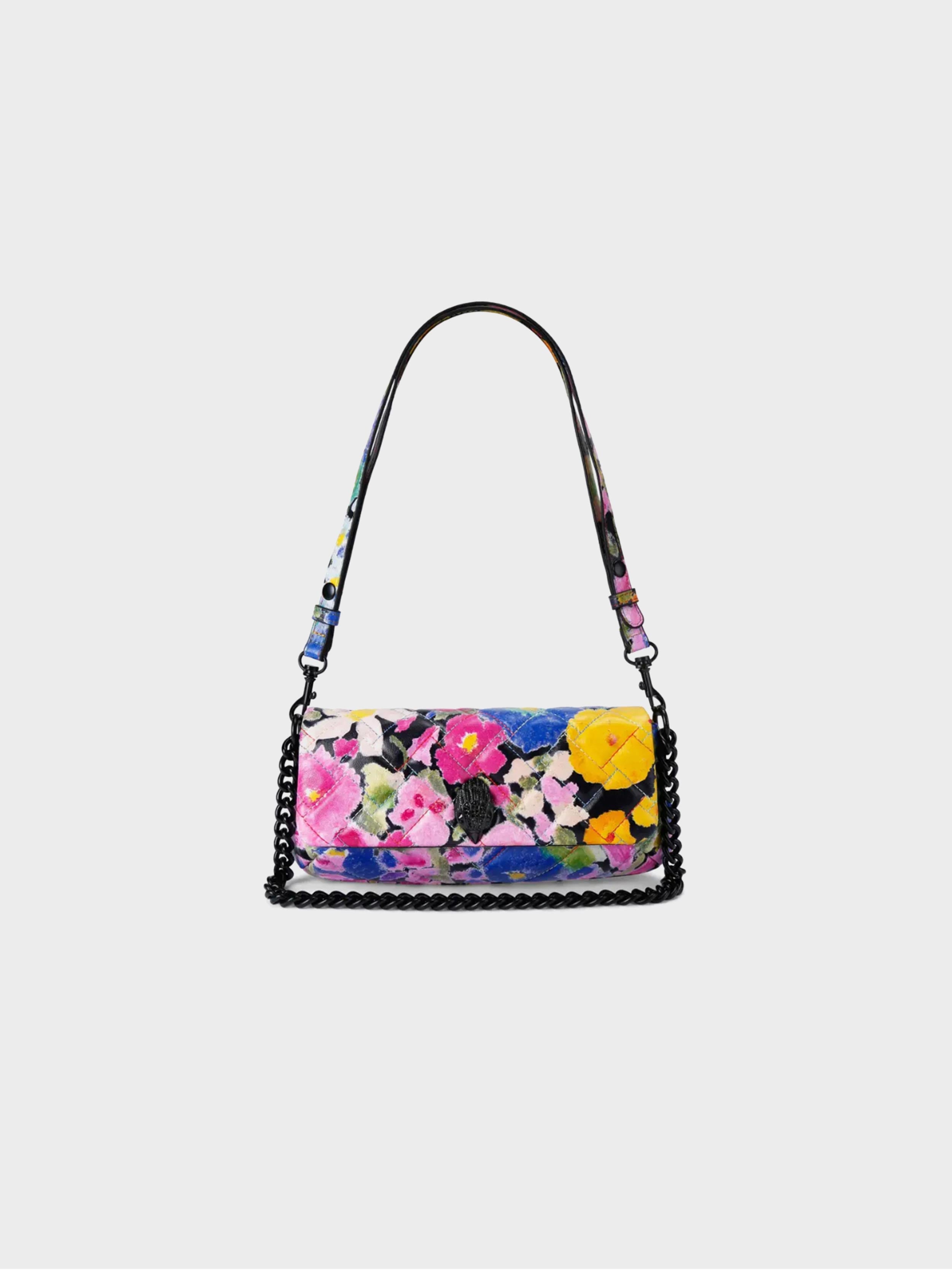 • This Small Long Denim Kensington Bag is crafted from leather with a statement floral print with overstitch quilting.