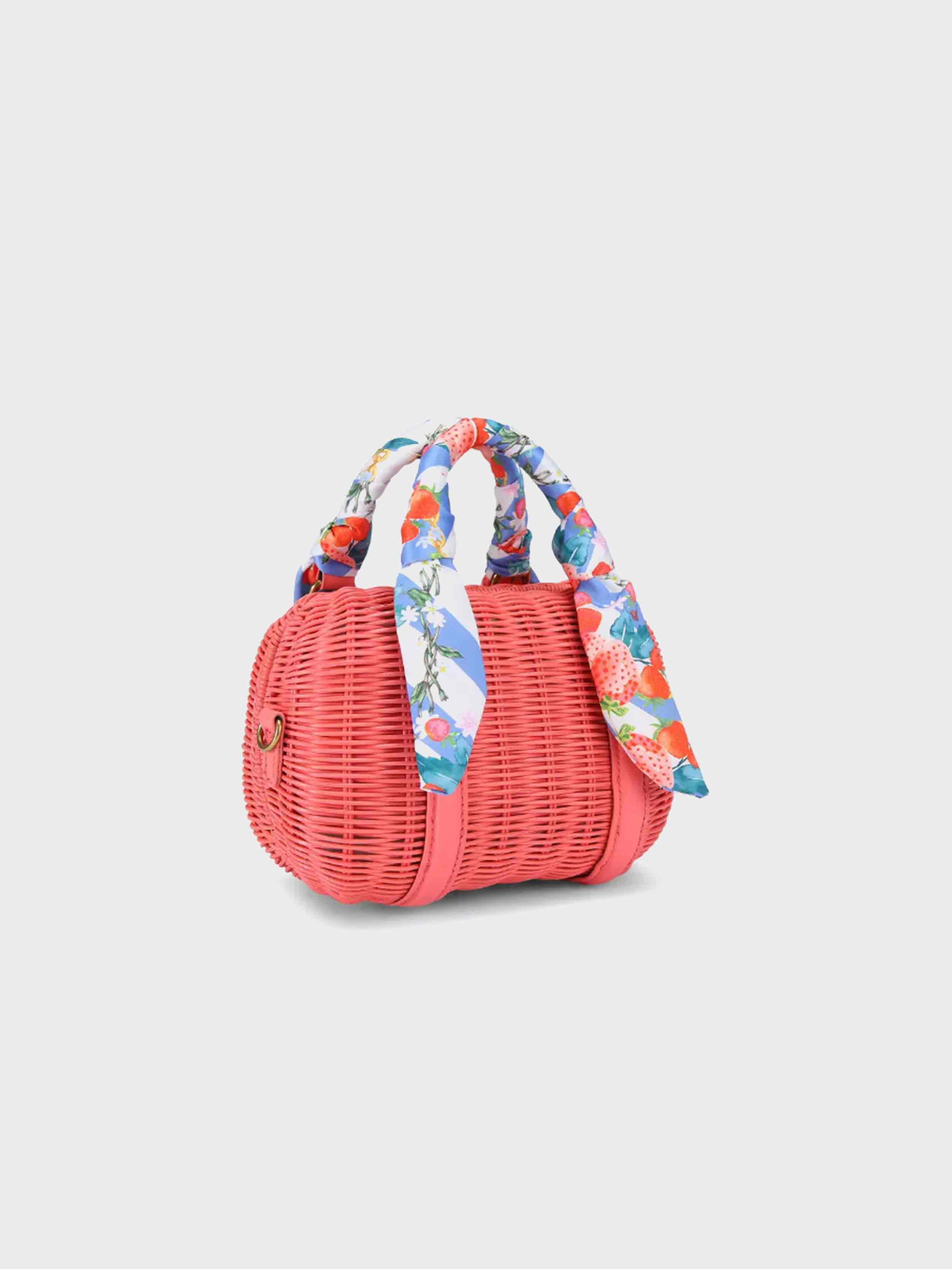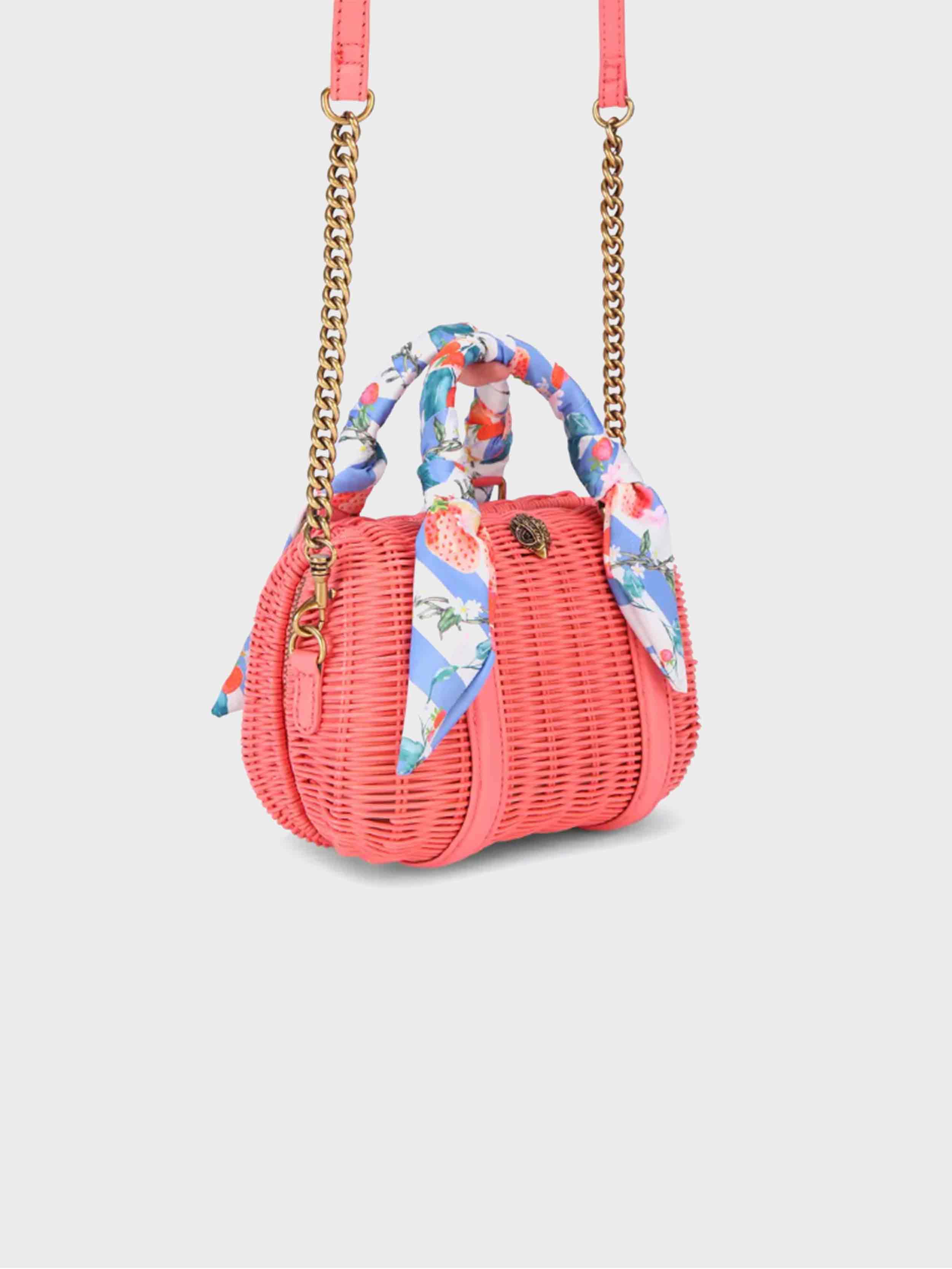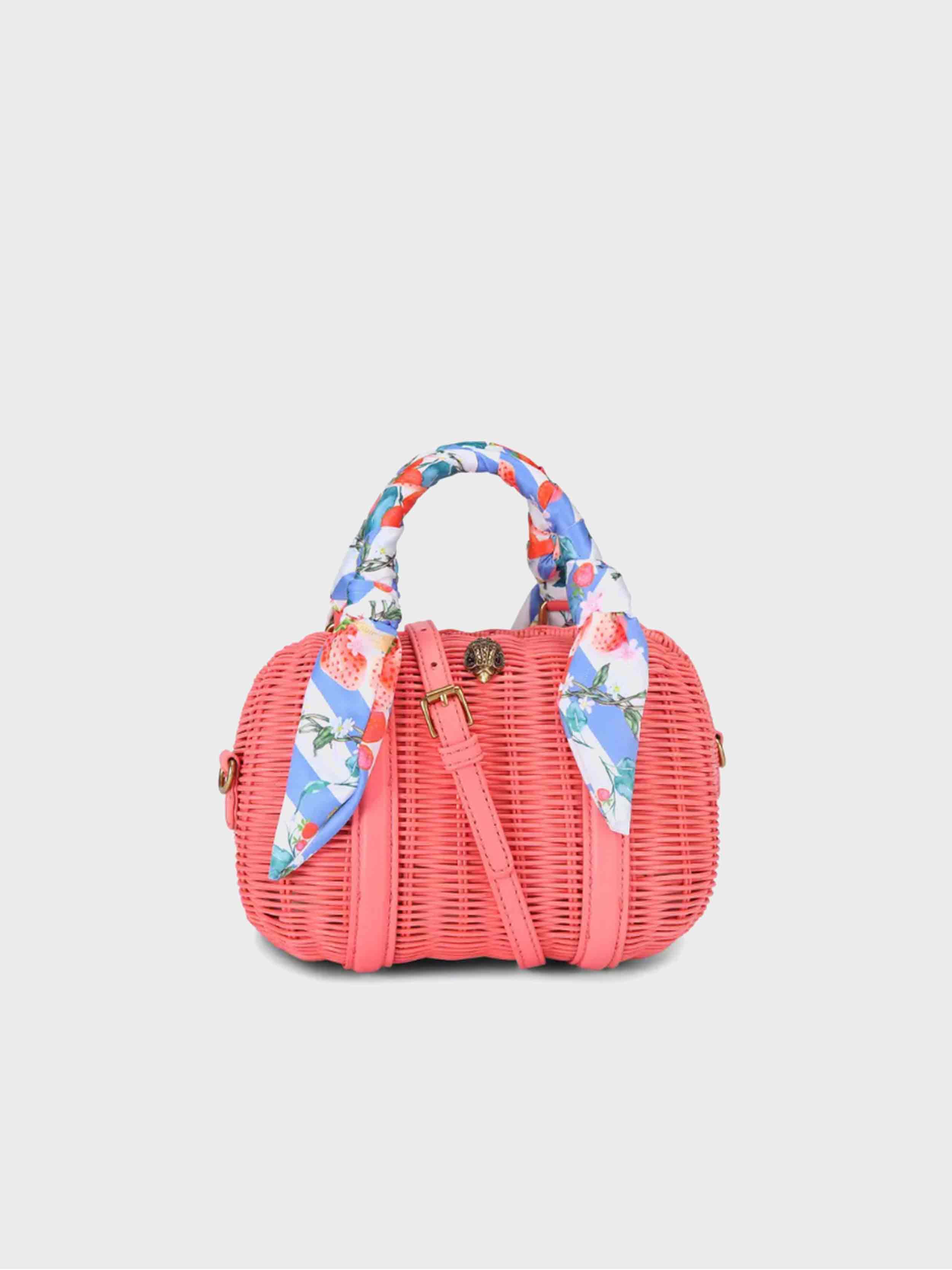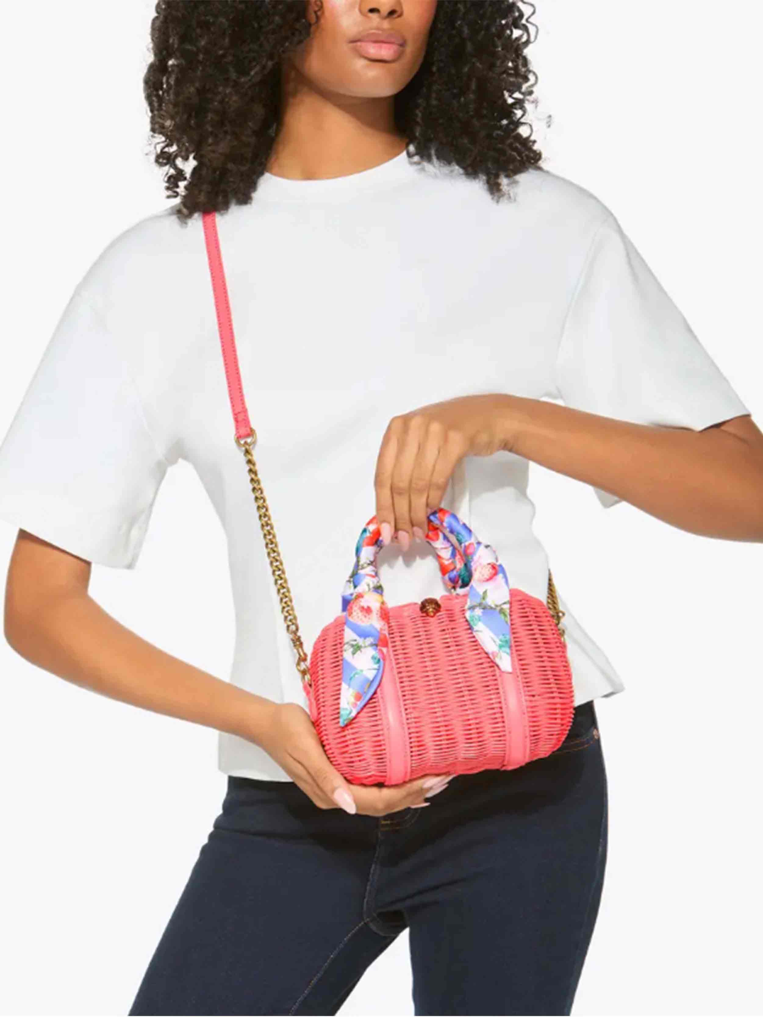 • The Kensington Basket Boston Bag in sugar coral colour is made with a structured basket shell.