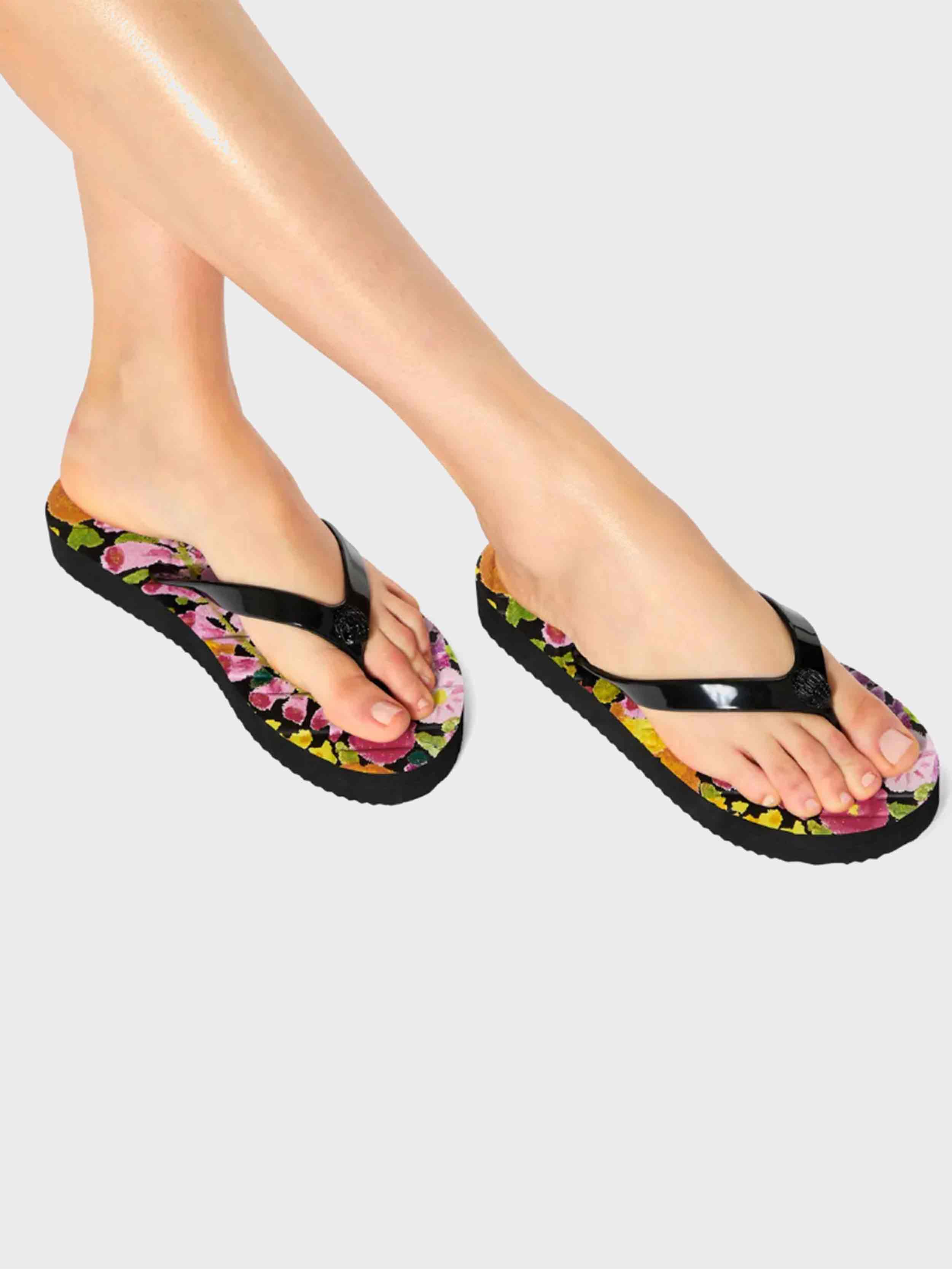 • The Kensington Quilted Flip Flop is crafted in a toe-post style with overstitch quilt in a weave pattern on the floral printed footbed.